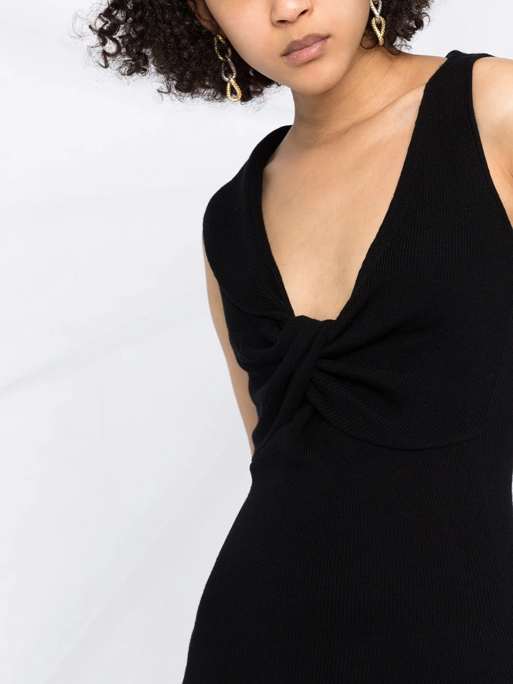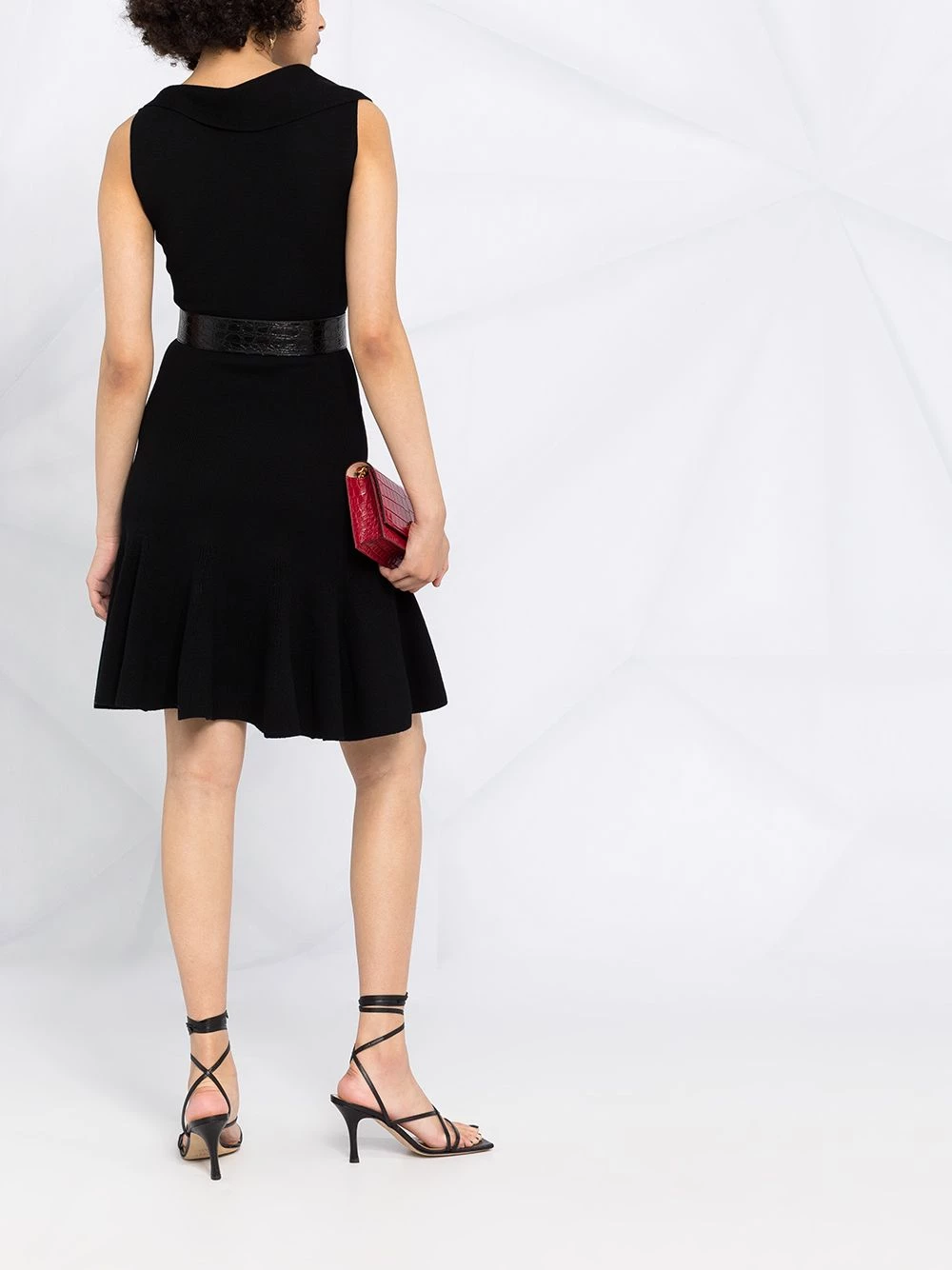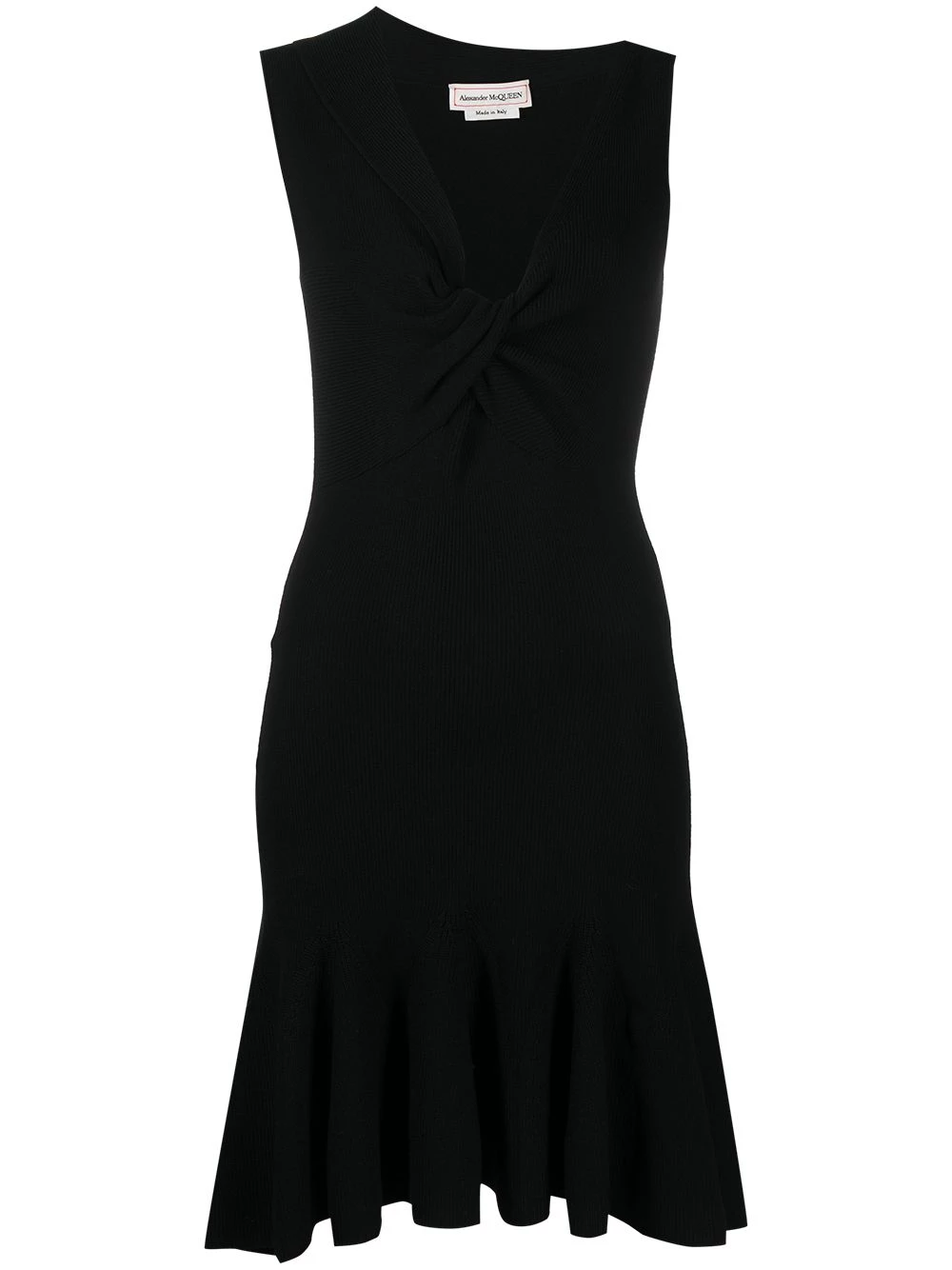 The little black dress with a sophisticated twist. Alexander McQueen’s interpretation of the LBD features an asymmetric neckline and a soft knitted construction. Timeless.ย