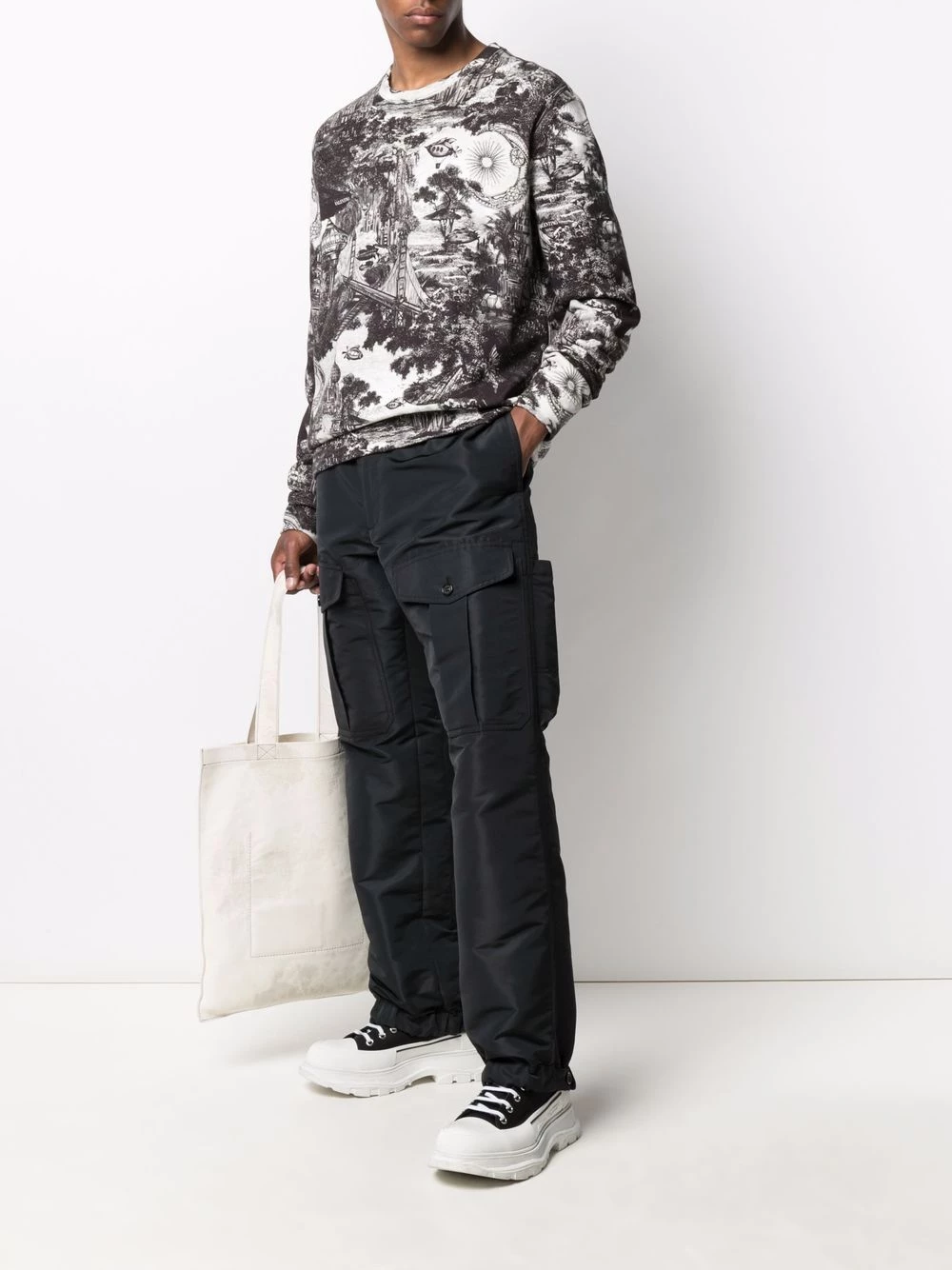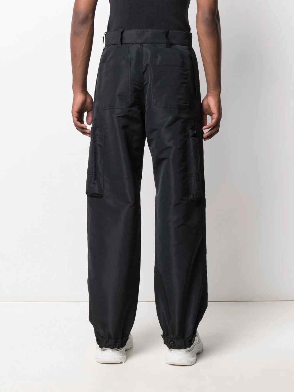Alexander McQueen presents a stripped-back AW21 collection, opting for a soft colour palette and furthering the focus on craftsmanship. These black cargo trousers are cut for a relaxed, baggy silhouette and designed with multiple large patch pockets.
