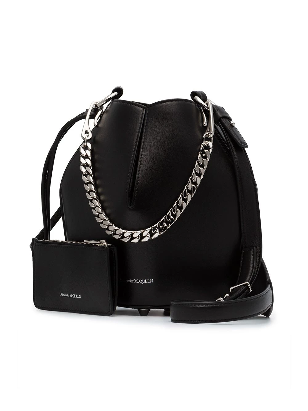 Alexander McQueen was a style visionary who seamlessly fused expert tailoring with an avant-garde aesthetic. Crafted in Italy from black leather, this drawstring bucket bag from Alexander McQueen features an optional chain strap, a detachable and adjustable shoulder strap and silver-tone hardware.