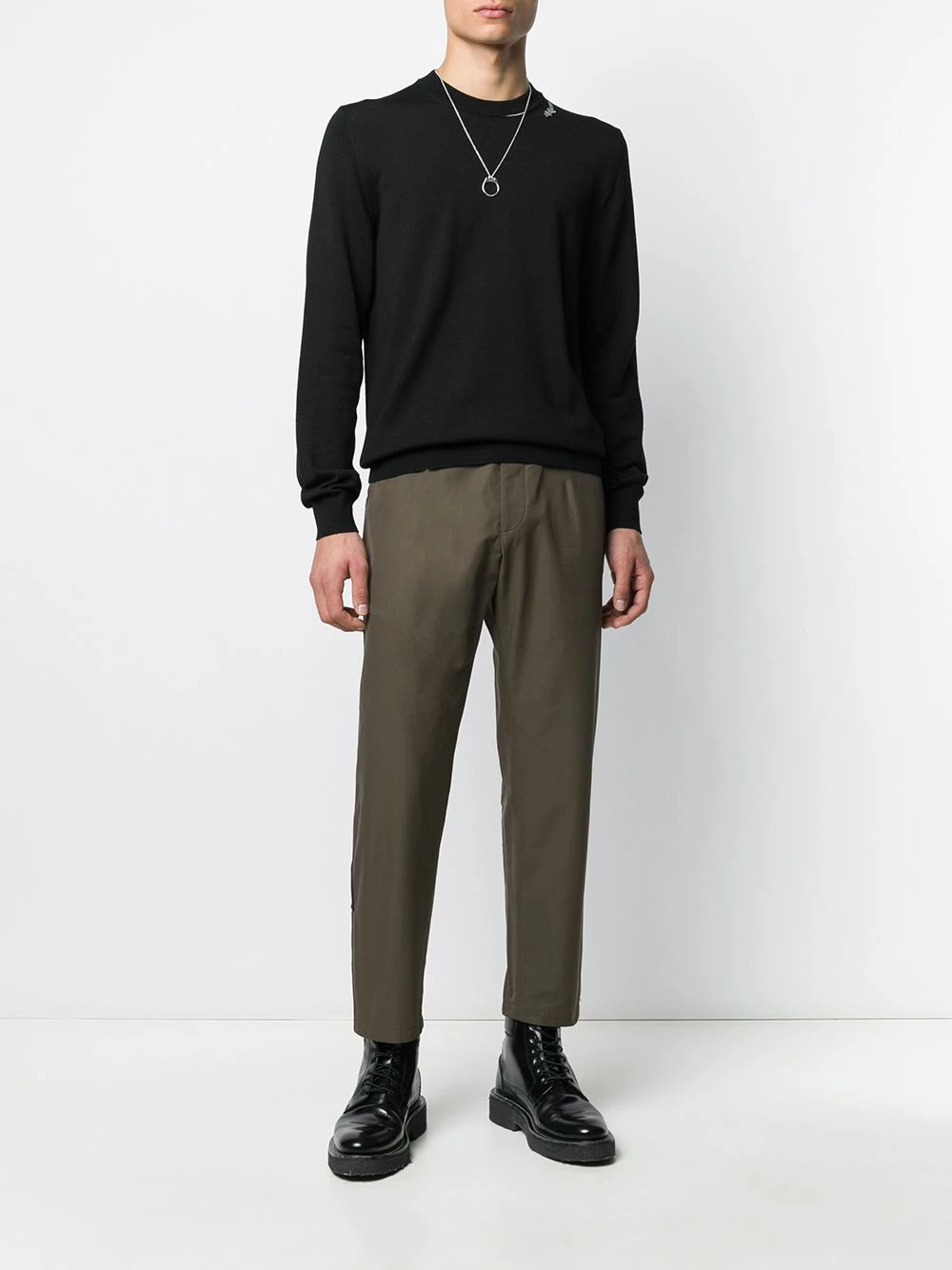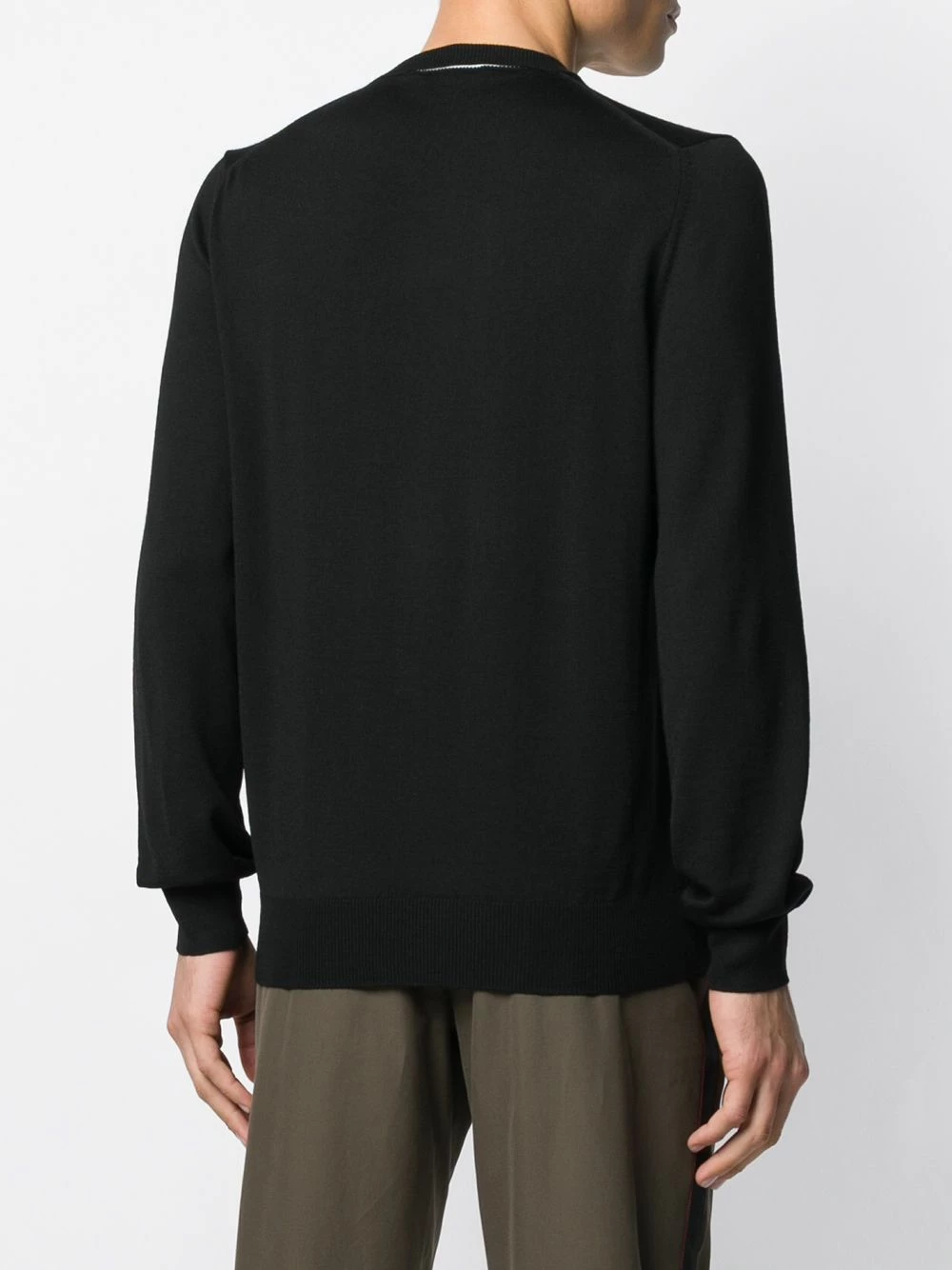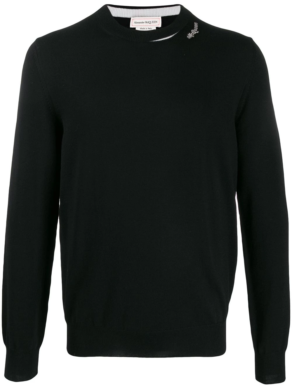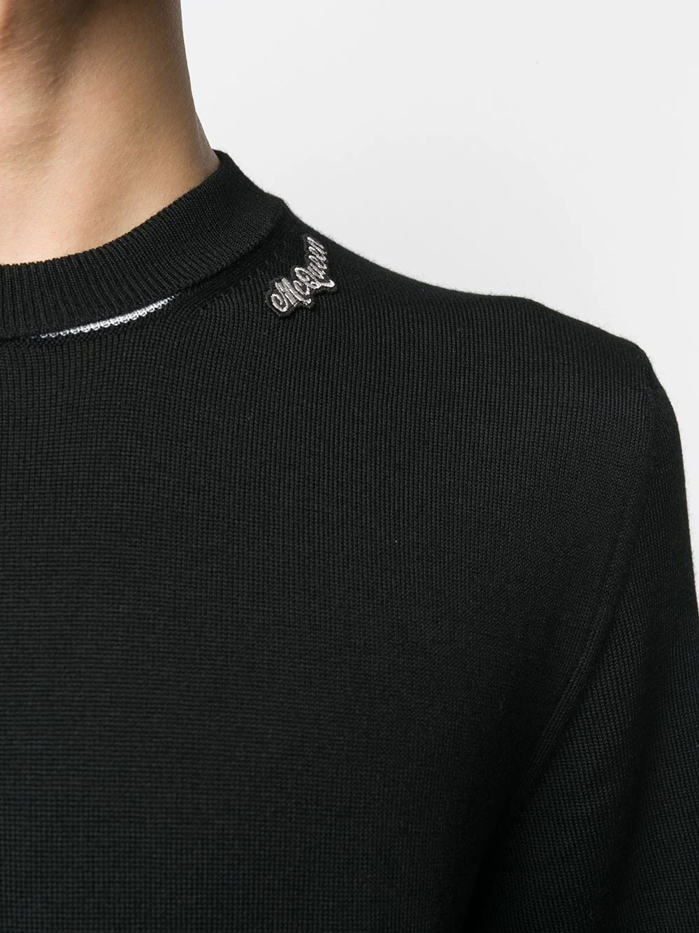 Add this black wool logo patch knitted jumper from Alexander McQueen to your (Autumn) morning routine and find out how easy getting your outfit together can be. All you need to worry now is your coffee. And it should be as black as the jumper you’ll be wearing. Featuring a ribbed crew neck, long sleeves, a ribbed hem and cuffs, a relaxed fit, a contrasting white detail to the collar and a black and white logo patch to the collar.