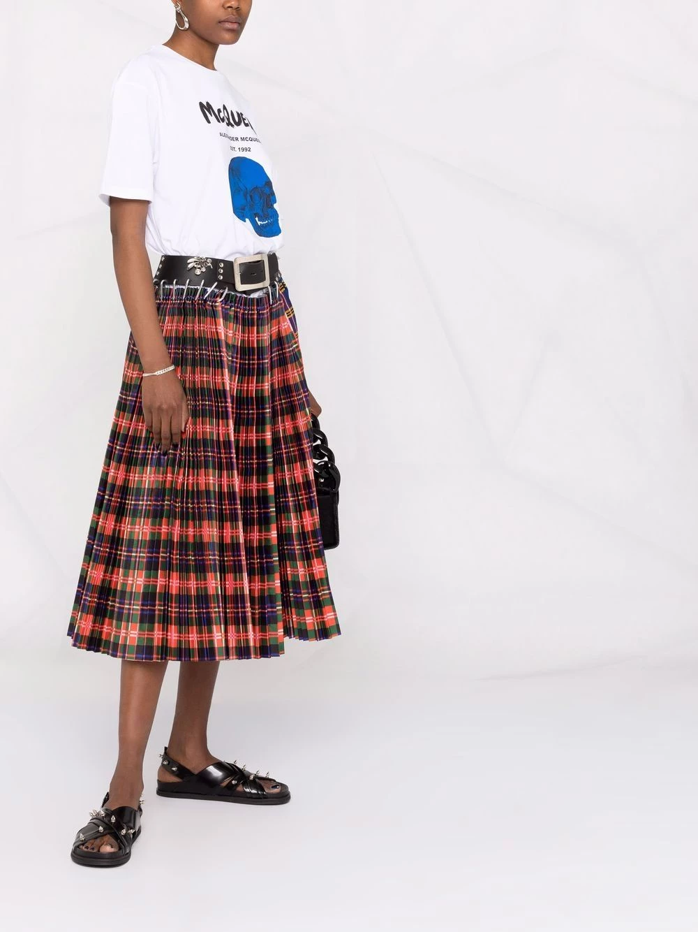 Take your laid-back looks to the next level. This white tee features a logo print at the chest and Alexander McQueen’s signature skull motif to the front. A not-so-basic basic.