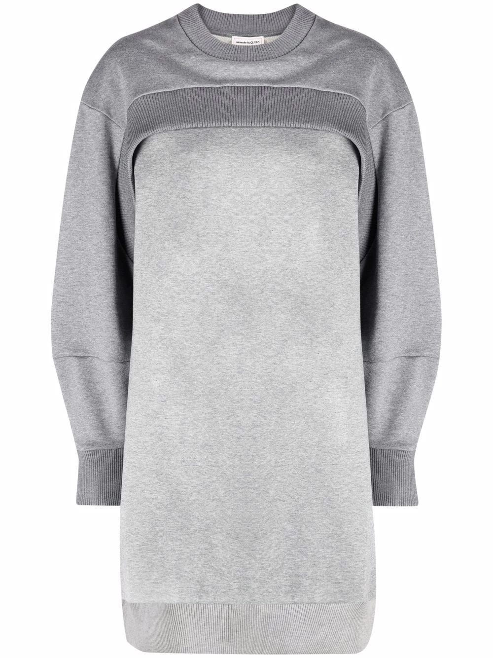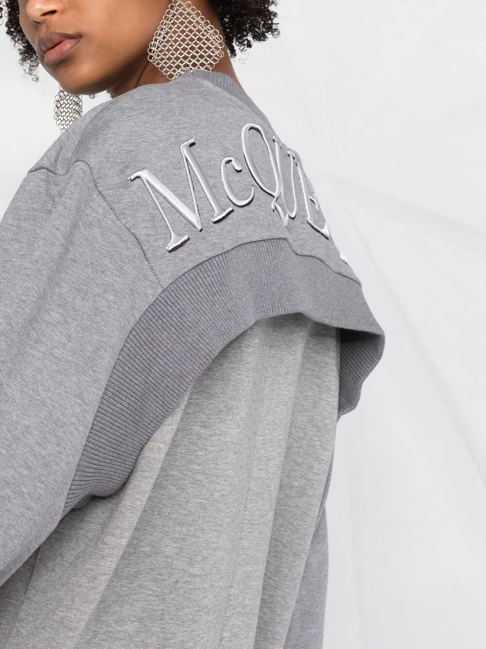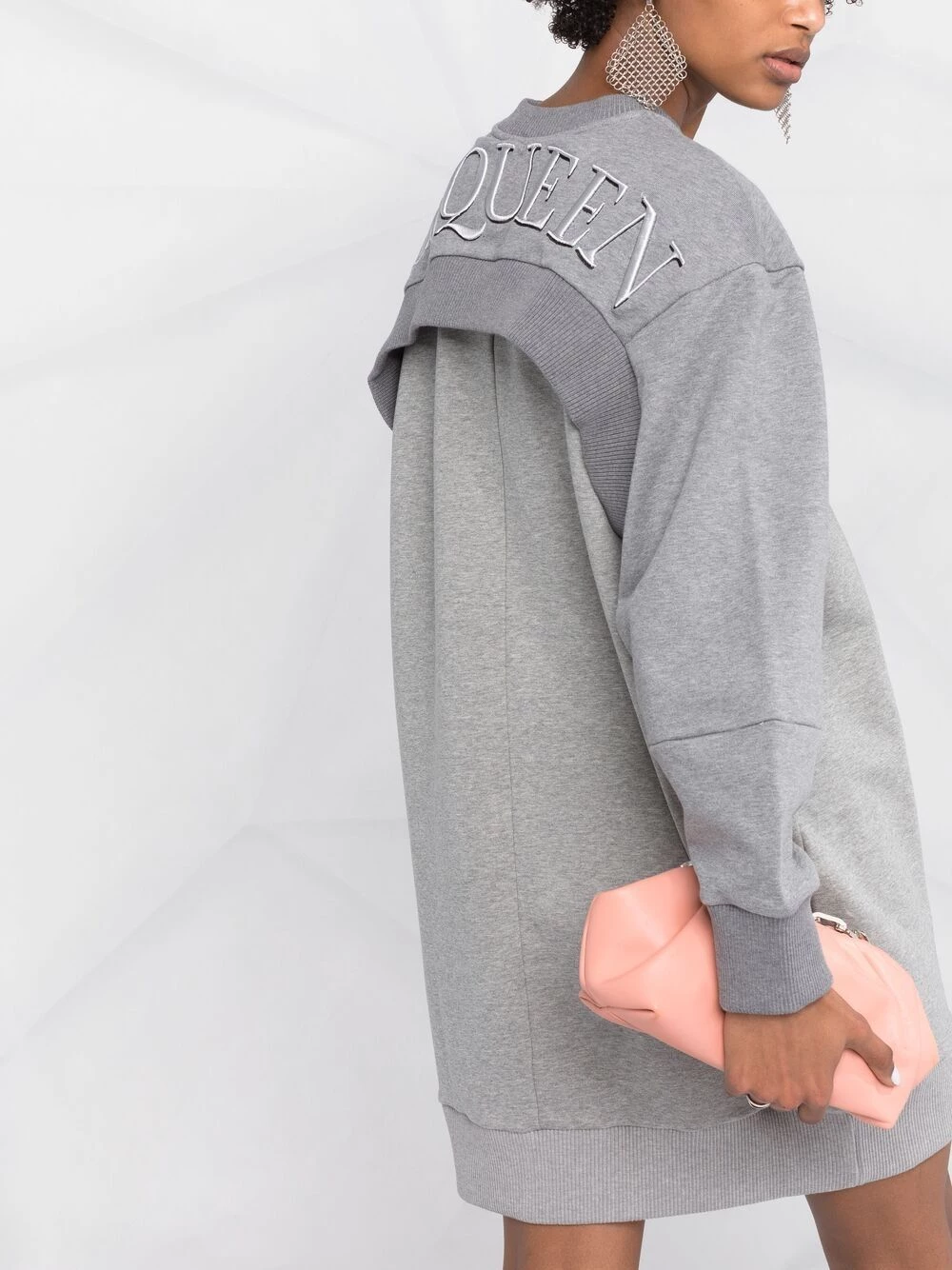 Grey days call for comfy clothing. This sweatshirt dress from Alexander McQueen has a layered construction and embroidered logo lettering on the rear. Comfort is key.