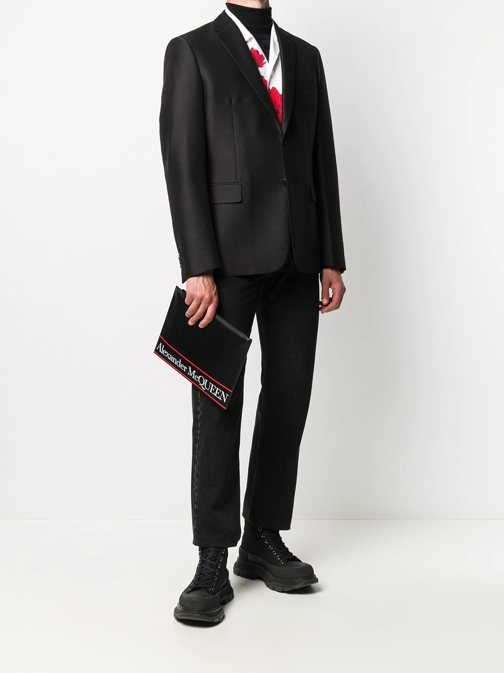 Alexander McQueen’s flat leather logo clutch is large enough to house only the most necessary of accessories. Think wallet, keys, phone and that’s it. Minimalists rejoice.