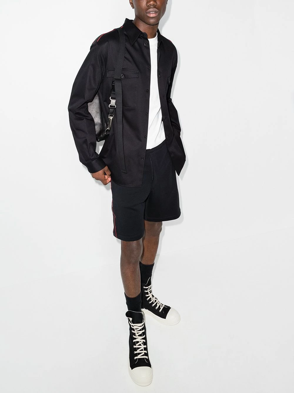 Adorned with the brand’s signature logo tape, these track shorts from Alexander McQueen are crafted from soft cotton and cut for a knee-length. With an elasticated waistband, they add a sportswear feel to the label’s gothic and theatrical aesthetic.