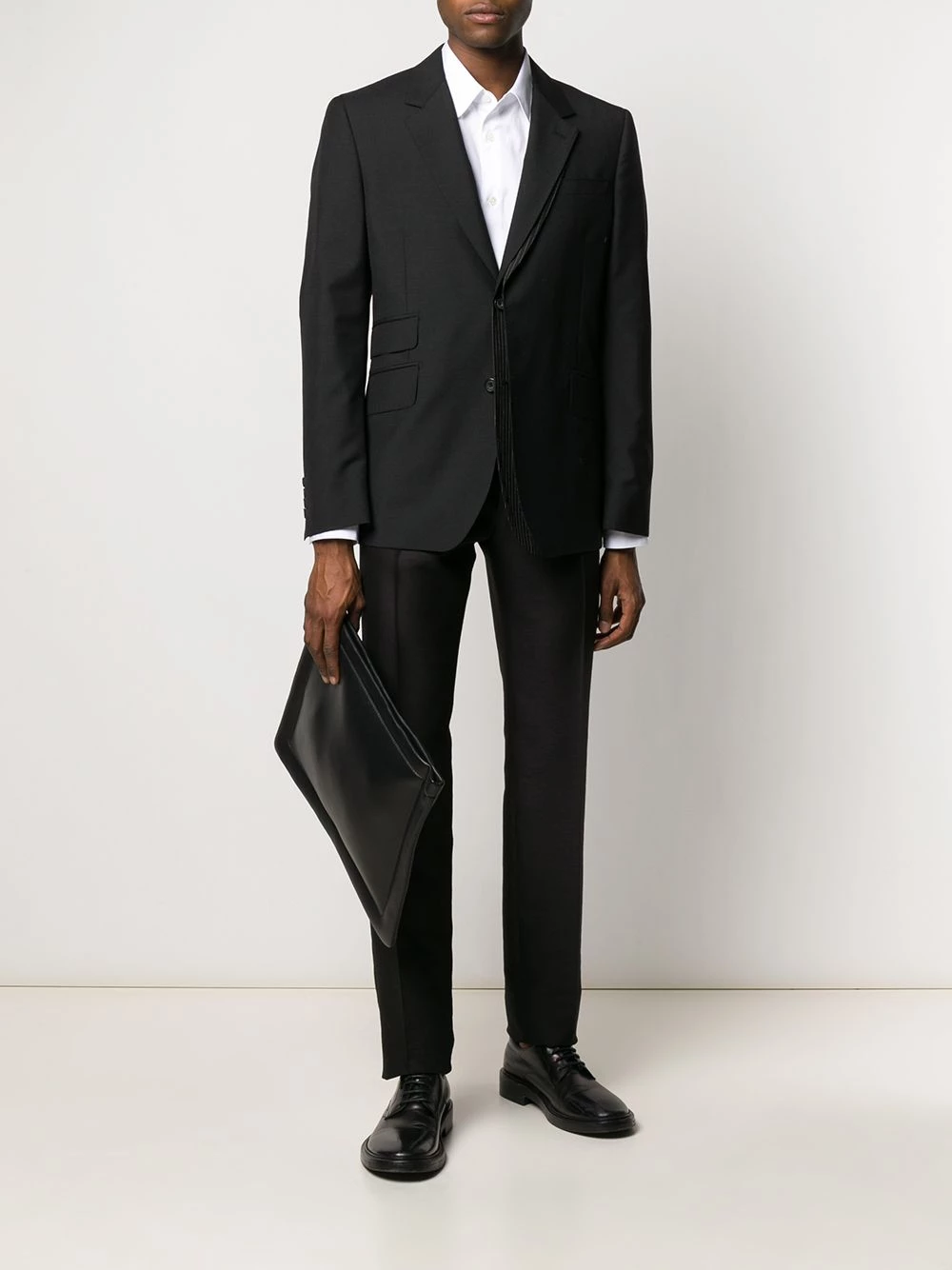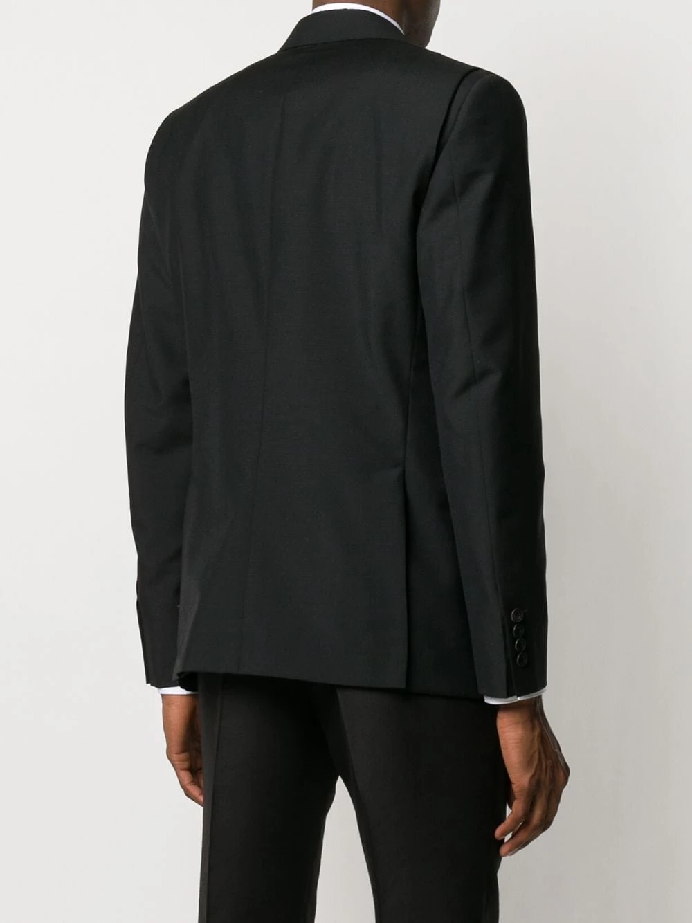 The bad boy of high fashion, this black wool and mohair blend pinstripe panelled suit jacket reflects Alexander McQueen’s punk rock attitude to tailoring. Featuring a layered design, notched lapels, a front button fastening, long sleeves, side flap pockets and a double vent to the rear, look closely for hidden messages – a trick that has become the brand’s calling card.