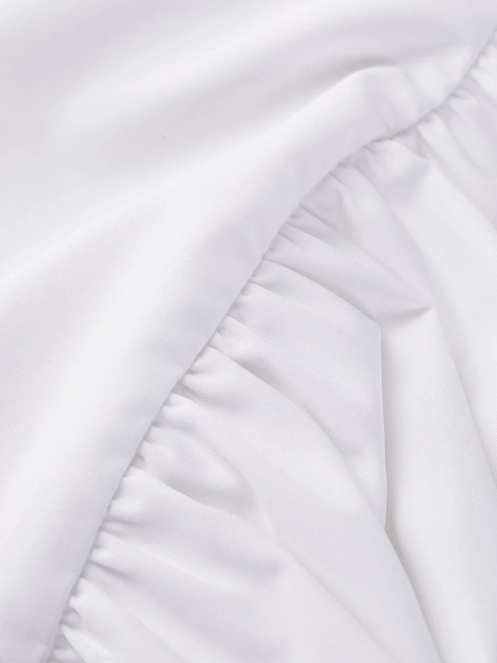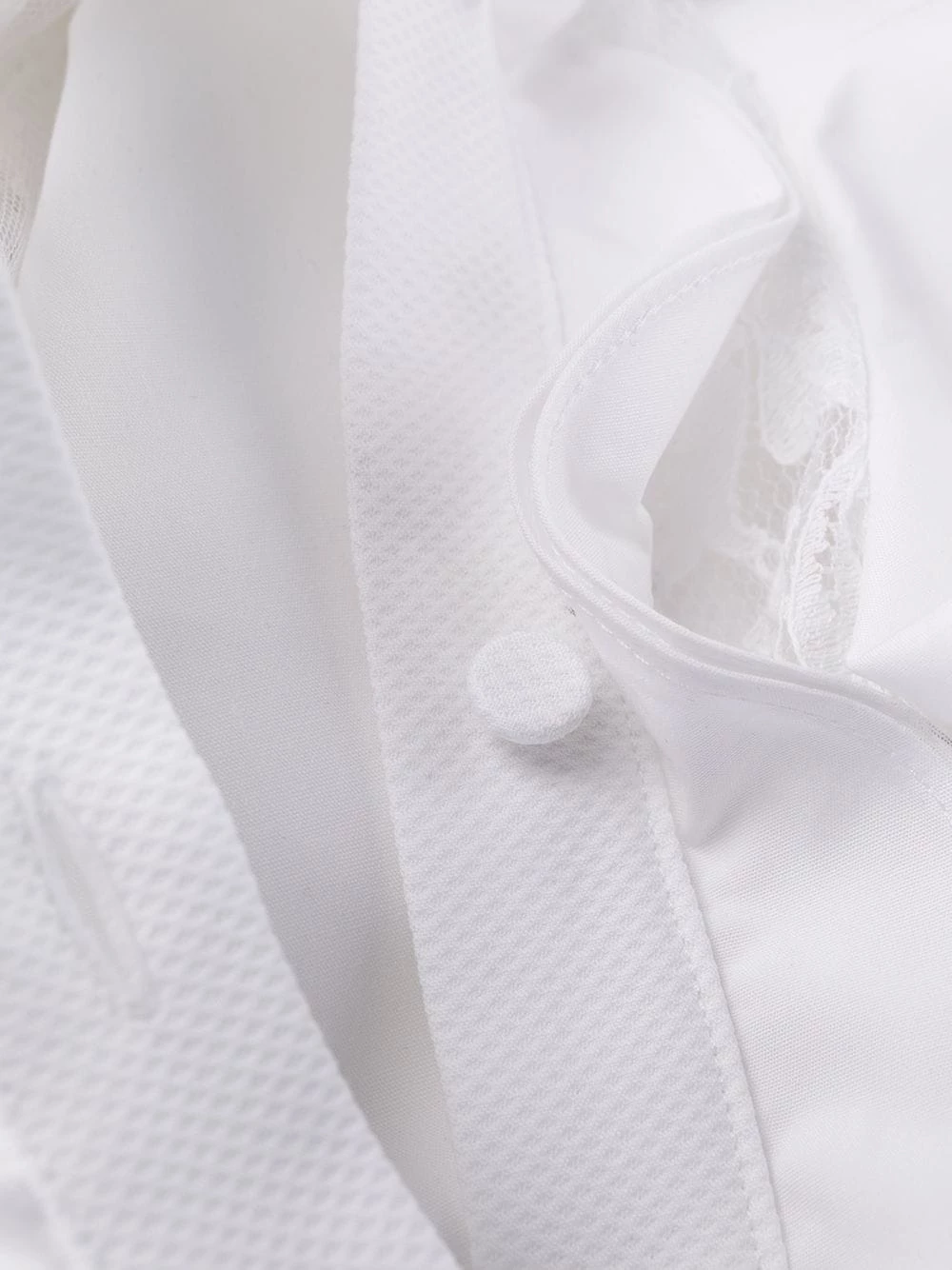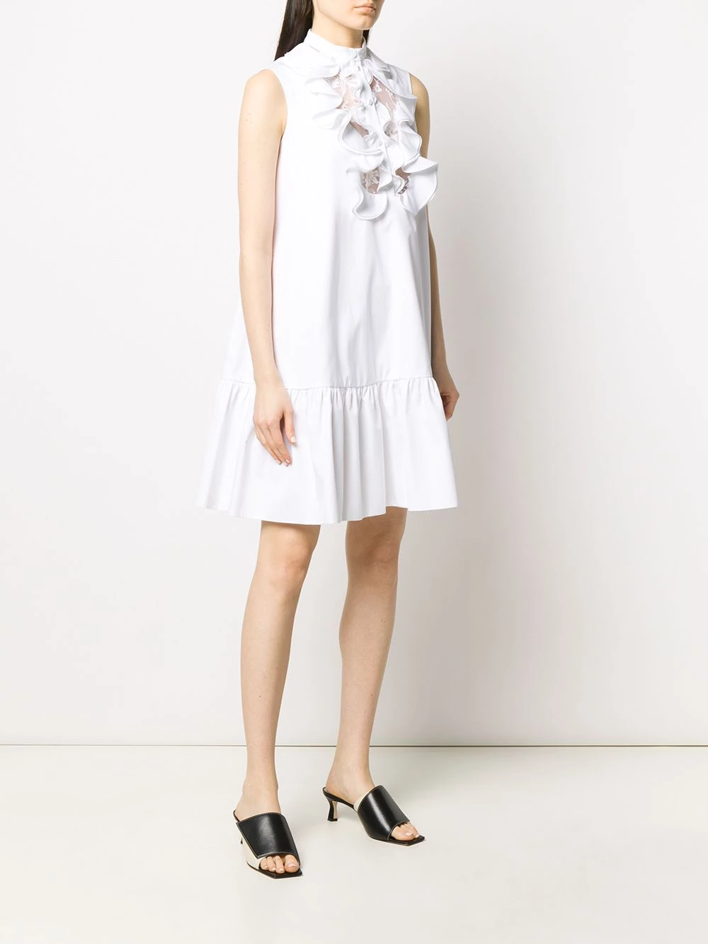 Move aside, LBD! Making a case for the LWD (little white dress), this white cotton ruffled yoke dress from Alexander McQueen takes a step back from the usual sombre tones of the House. That’s all-white with us. Featuring a sleeveless design, a round neck, a front button fastening, a ruffled hem and a ruffled and lace yoke.