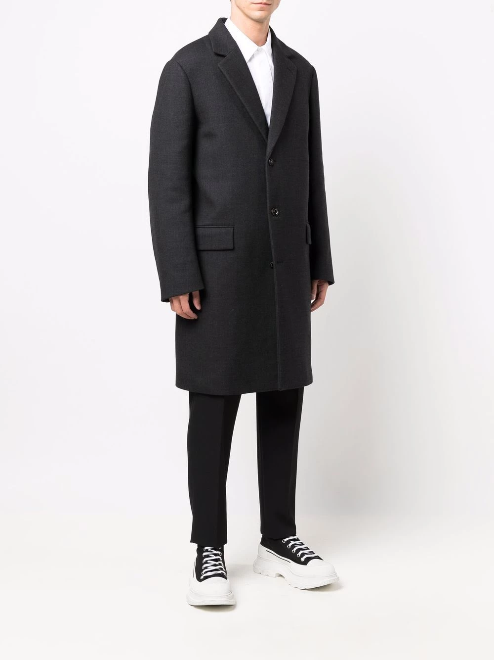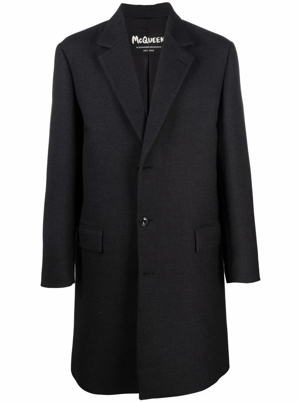 Expert tailoring is a key motif that runs throughout Alexander McQueen collections. Presented for AW21, this Italian-made dark grey single-breasted coat has been crafted from virgin wool and cotton and features a smooth silk lining.