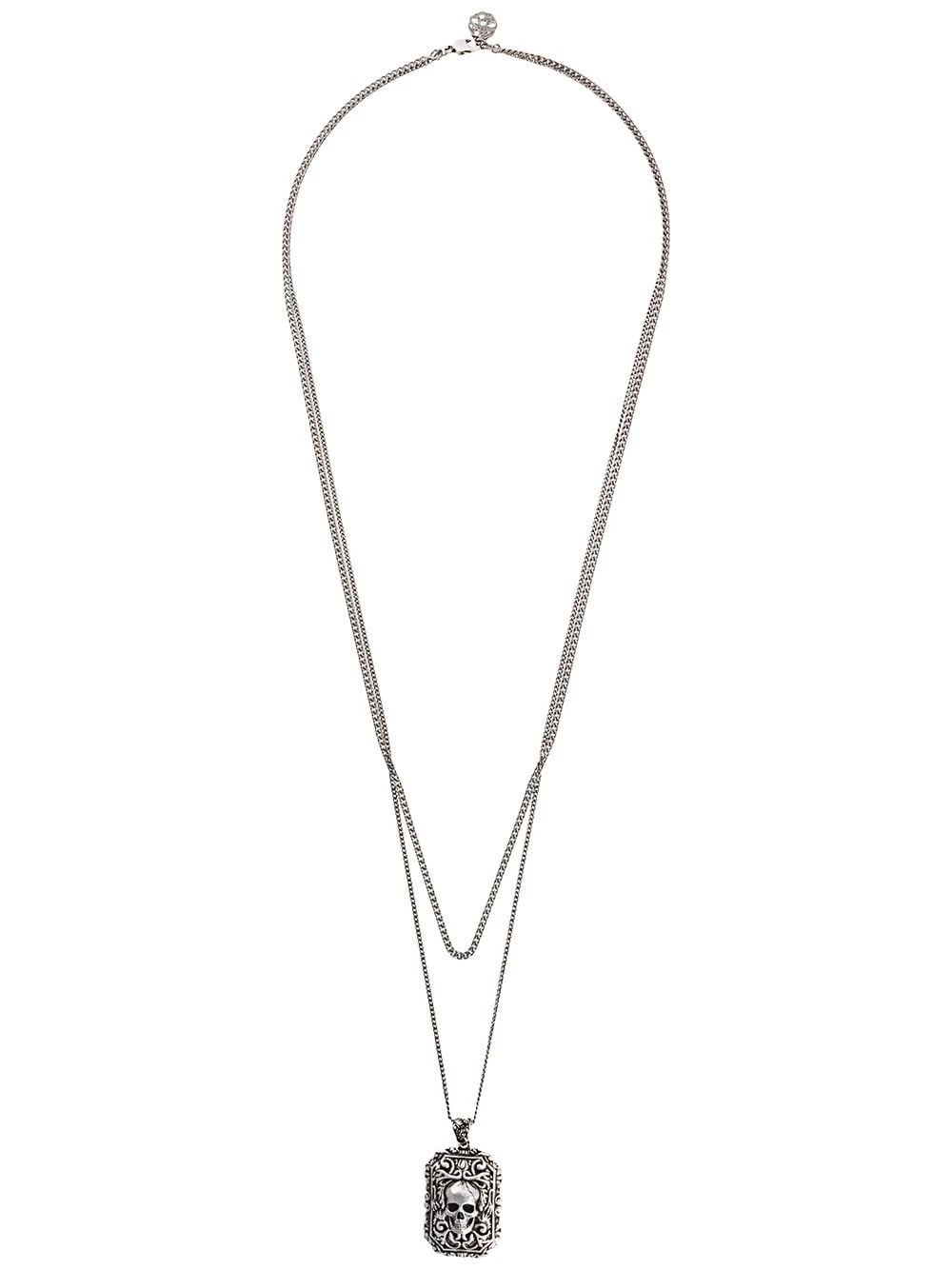 Rock Alexander McQueen’s signature skull in style. This charm detail necklace is given an extra, contemporary boost by the double chain. You’ll never want to take it off. Featuring a signature skull charm, a chain link style, a clasp fastening and a double chain.