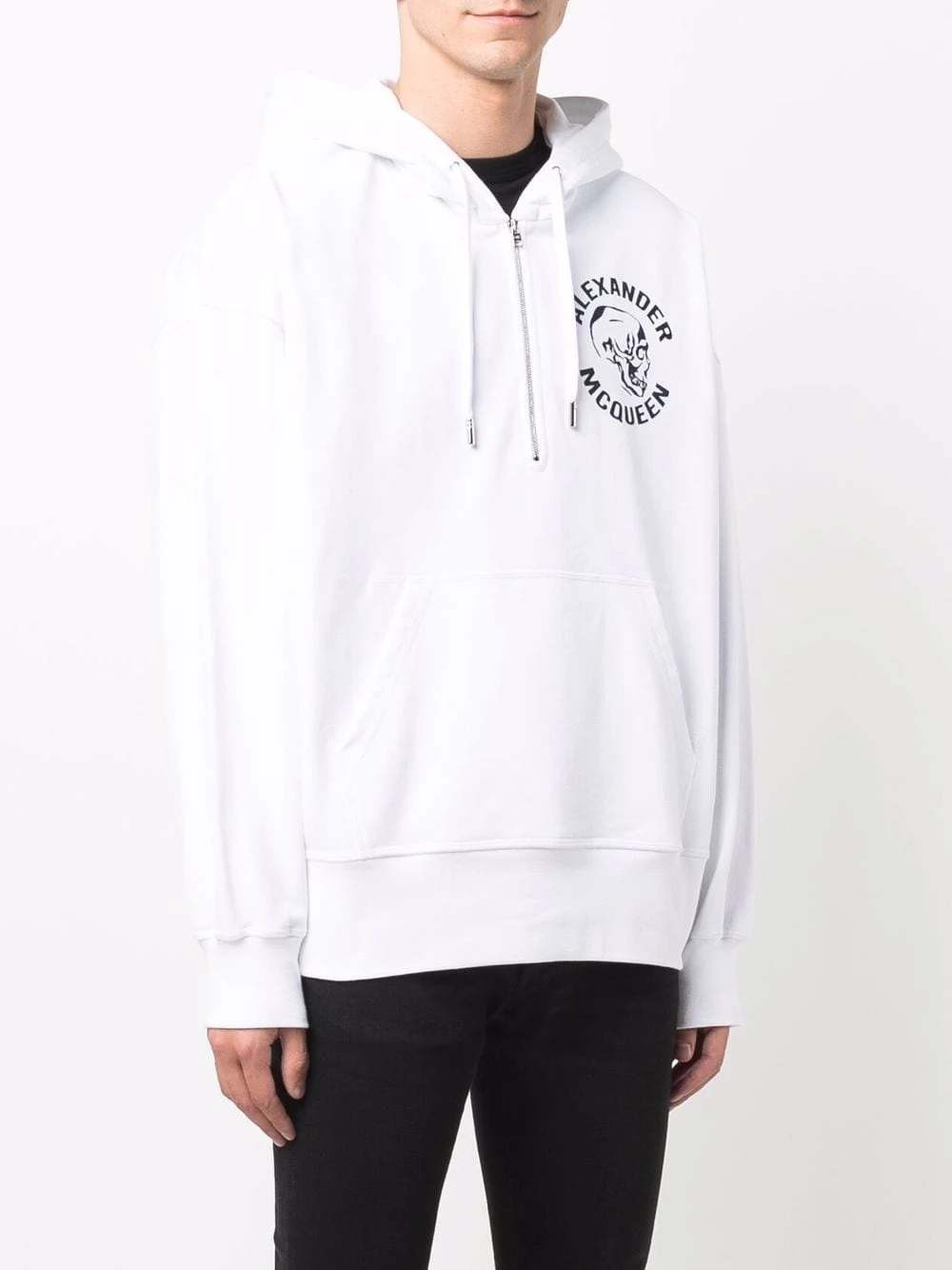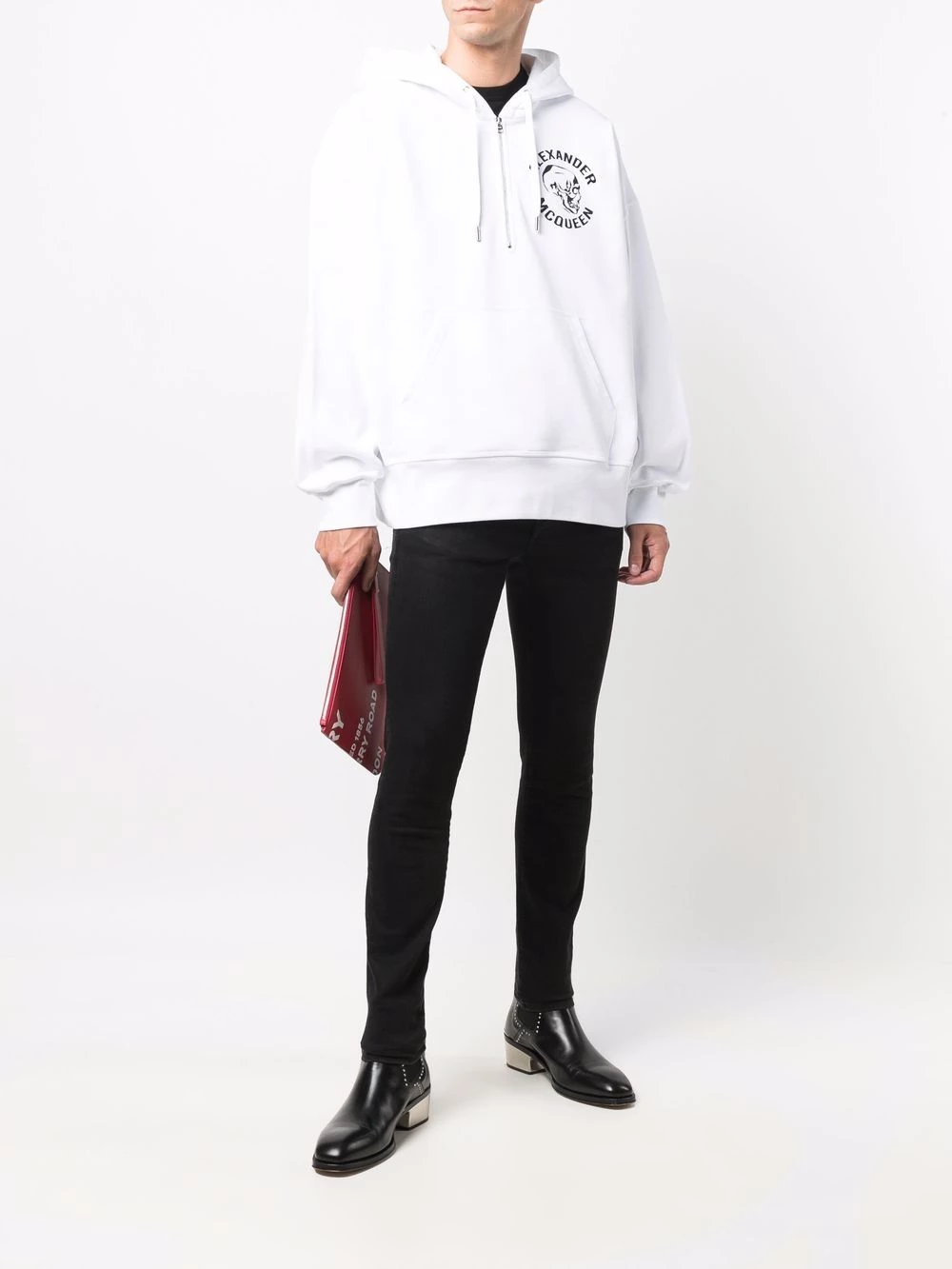 Dating back to the late Lee McQueen’s 1992 graduate collection, the ominous skull symbol continues to be at the heart of the British fashion House’s work. For AW21, it remains front and centre on this white hoodie.