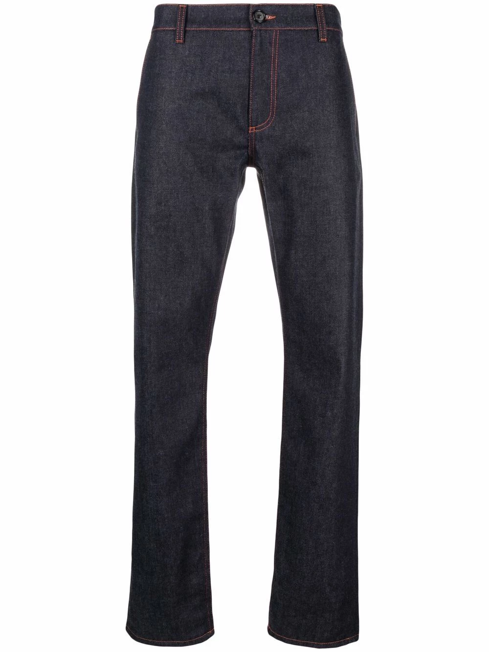 It’s always the small things that make the big picture. Look closely to see the red contrast stitching on these elegant straight-leg jeans from Alexander McQueen. Every detail counts.