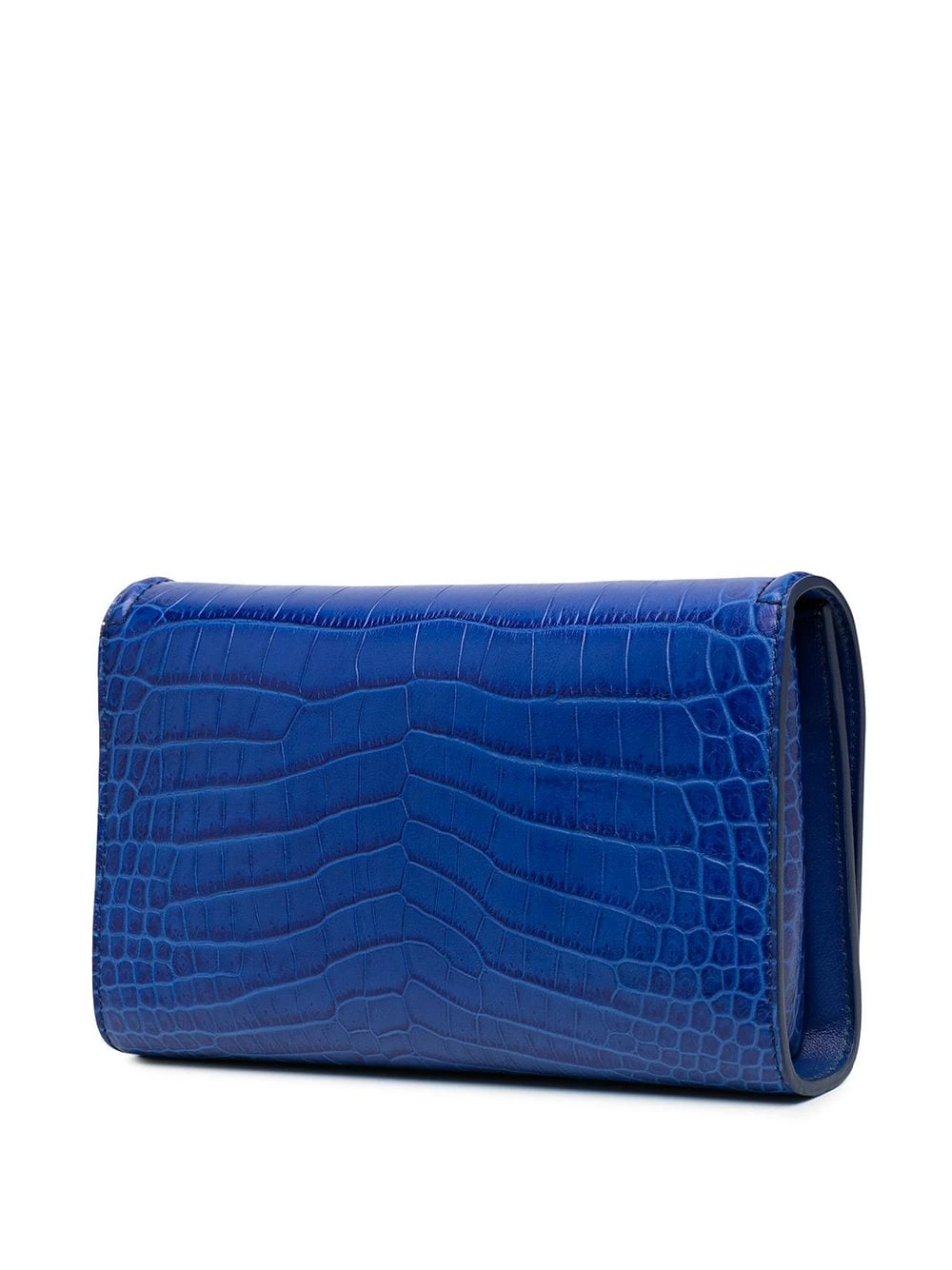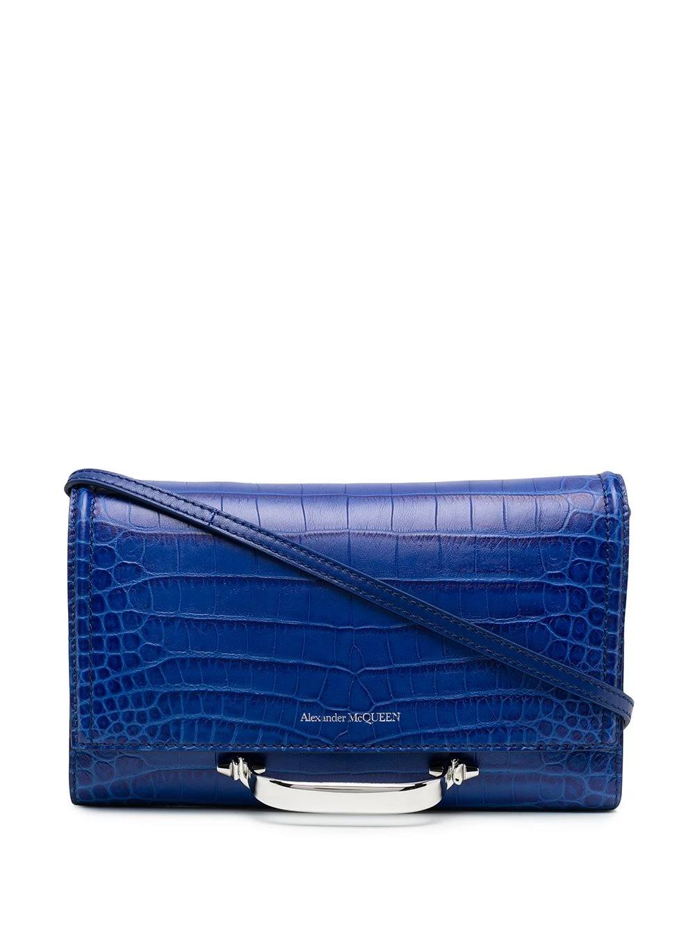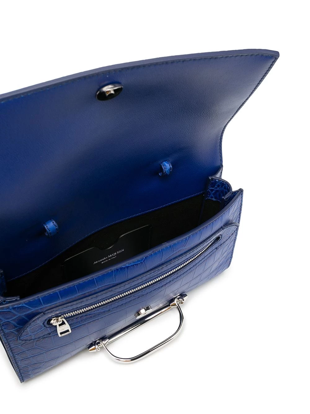 Carry Alexander McQueen around with you wherever you go with this calf leather croc-effect clutch bag. Designed with equestrian touches such as the polished silver-tone handle, this hand-held accessory is perfect for when you want to just grab and go!