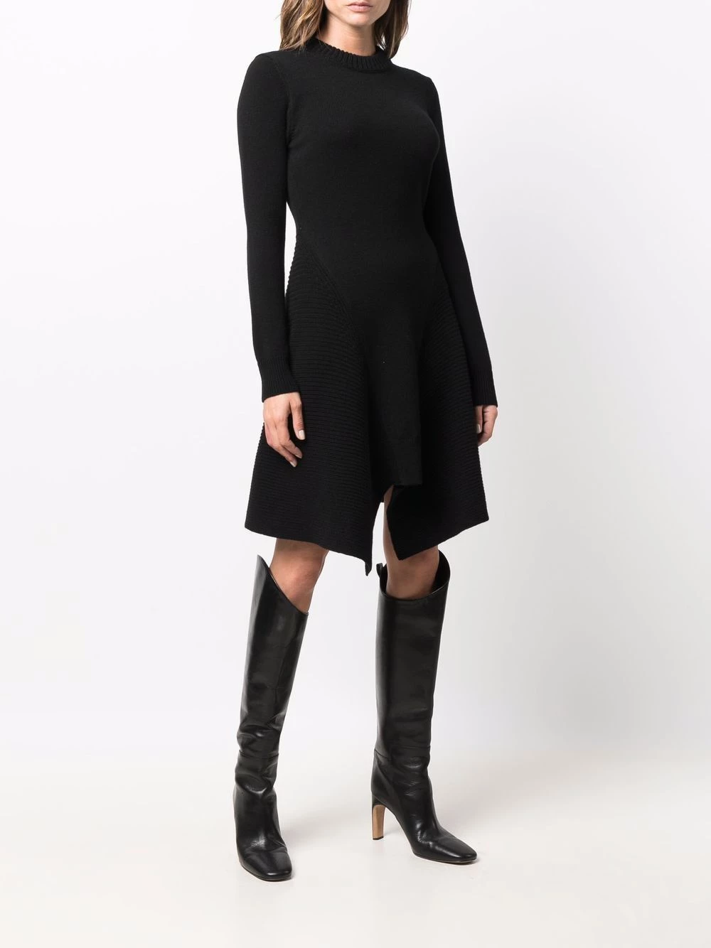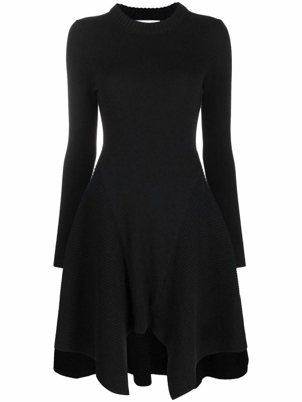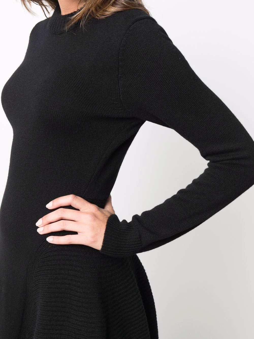 Alexander McQueen’s knitwear prowess is demonstrated in the flared chunky-knit silhouette of this dress. Cut from pure cashmere in a black hue, this piece is finished with a contemporary slit at the hem.