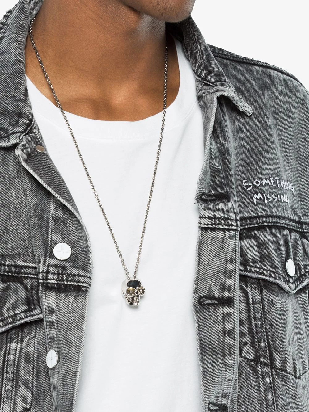 This Alexander McQueen skull necklace is an assembled item which can be divided in two halves, allowing you to play with the puzzling accessory. Symbol of the brand, the Gothic motif was created from silver-toned brass and features a long cable chain.