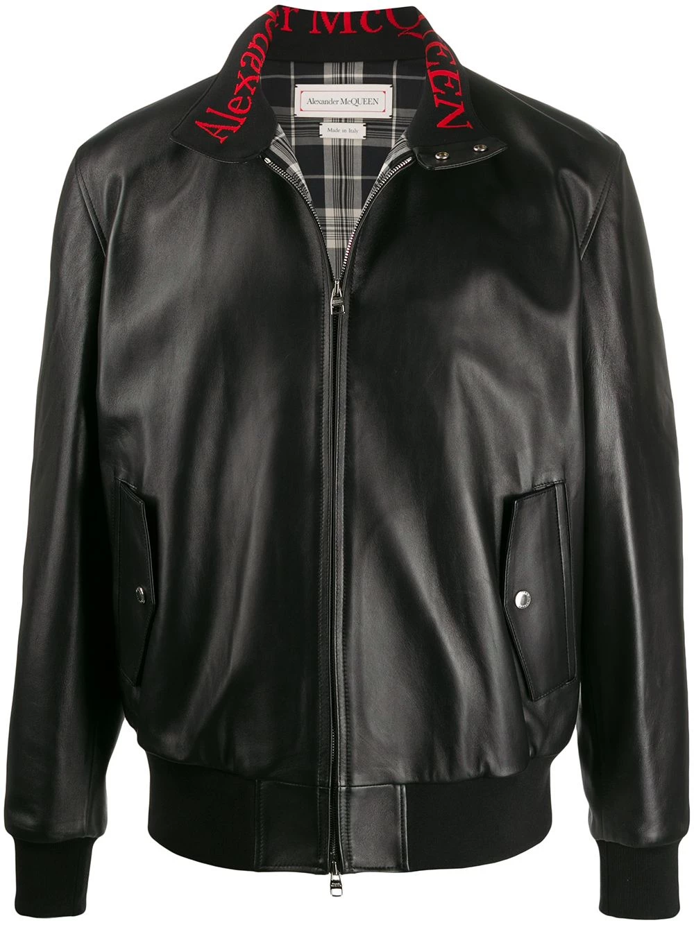 Someone’s looking sleek. Made from black, this lambskin zipped bomber jacket from Alexander McQueen will make you feel like James Dean in Rebel Without a Cause. Trust us, you won’t change your mind. Featuring a front zip fastening, long sleeves, a ribbed hem and cuffs, a straight hem, a high snap fastening collar, two front snap pockets, a check lining and a contrasting red lettering logo at the collar.