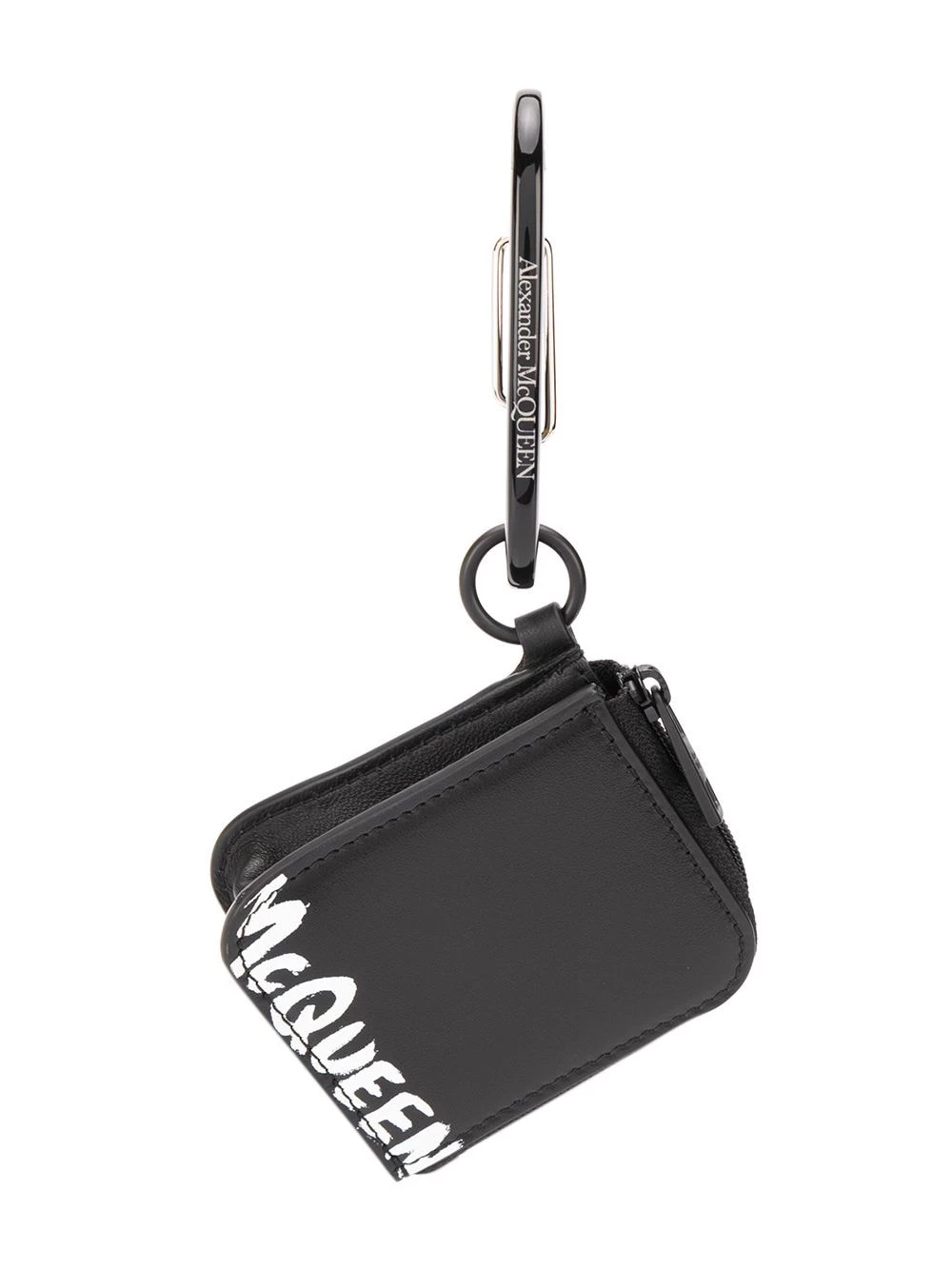 Some of the best things come in small sizes. Crafted in black leather, this keyring from Alexander McQueen sports a logo tiny zip pouch. Mini but with maximum impact. Featuring an all around zip fastening and a printed logo.