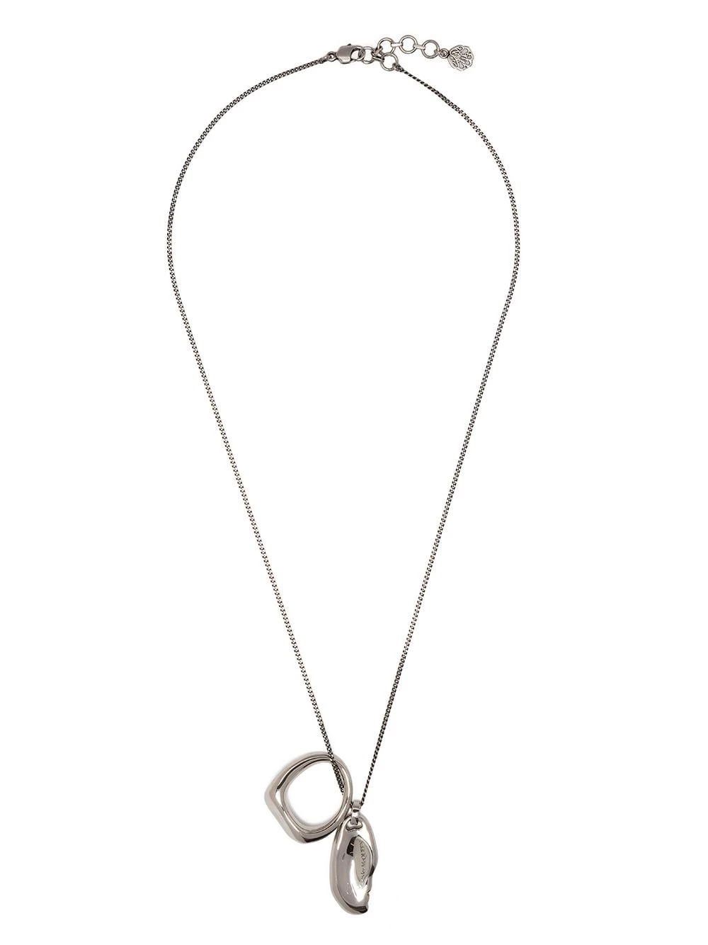 Alexander McQueen continues to showcase the label’s artistic creativity with this long Molten charm necklace for AW21. Detailed with two polished silver charms, the versatile piece is subtly detailed with a logo engraving.