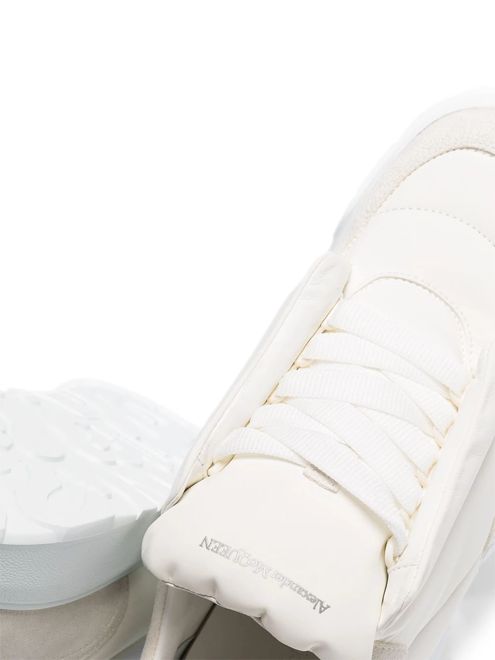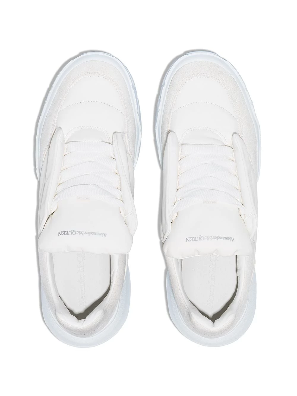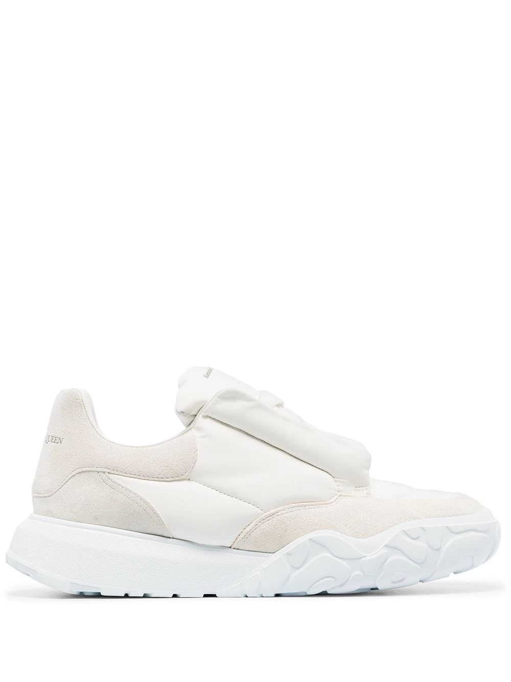 Alexander McQueen’s signature Oversized sneakers get a sporty update. These Oversized New Court sneakers are finished with a panelled design for added charm and sit atop a chunky ridged rubber sole.