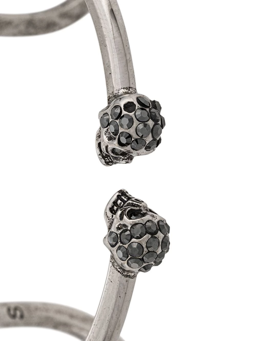Incorporate Alexander McQueen’s signature skull motif into everyday looks with this silver-tone brass and crystal S-M Skull double bangle. This SS19 Alexander McQueen piece features dramatic black crystal embellished skulls.