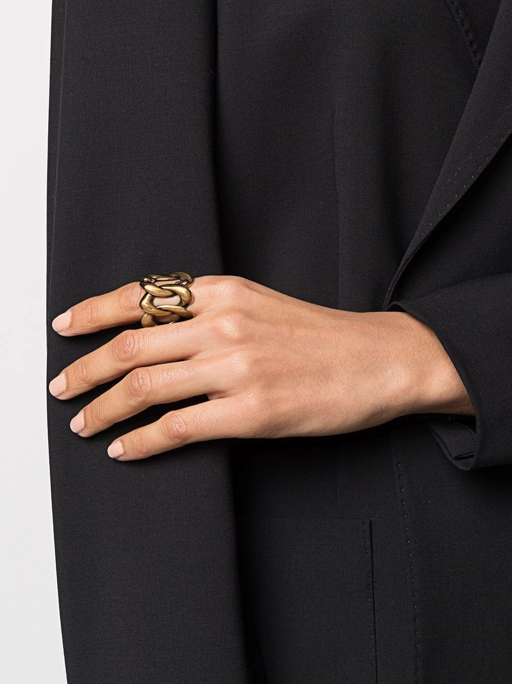 Alexander McQueen makes the macabre beautiful. Case in point: this gold-tone brass skull chain ring. It’s deathly design is striking.