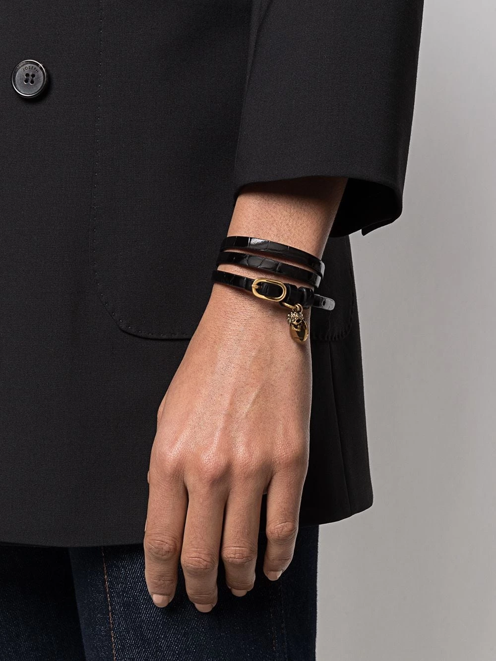 Everybody has some skeletons in their closet. But not everybody has a skull-charm on their wrist. Stand out from the crowd with this leather bracelet from Alexander McQueen.