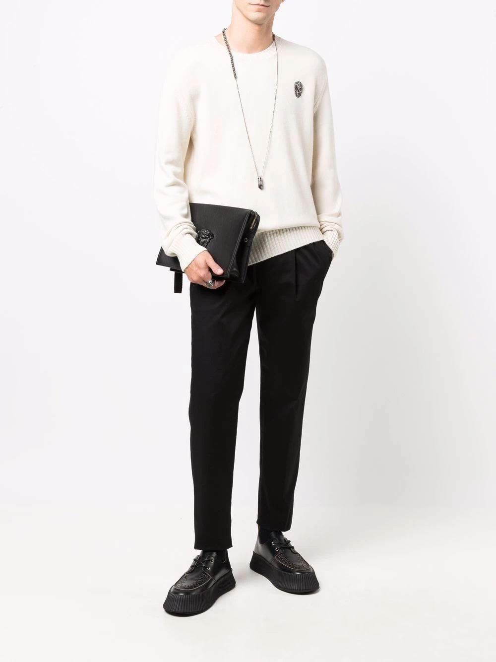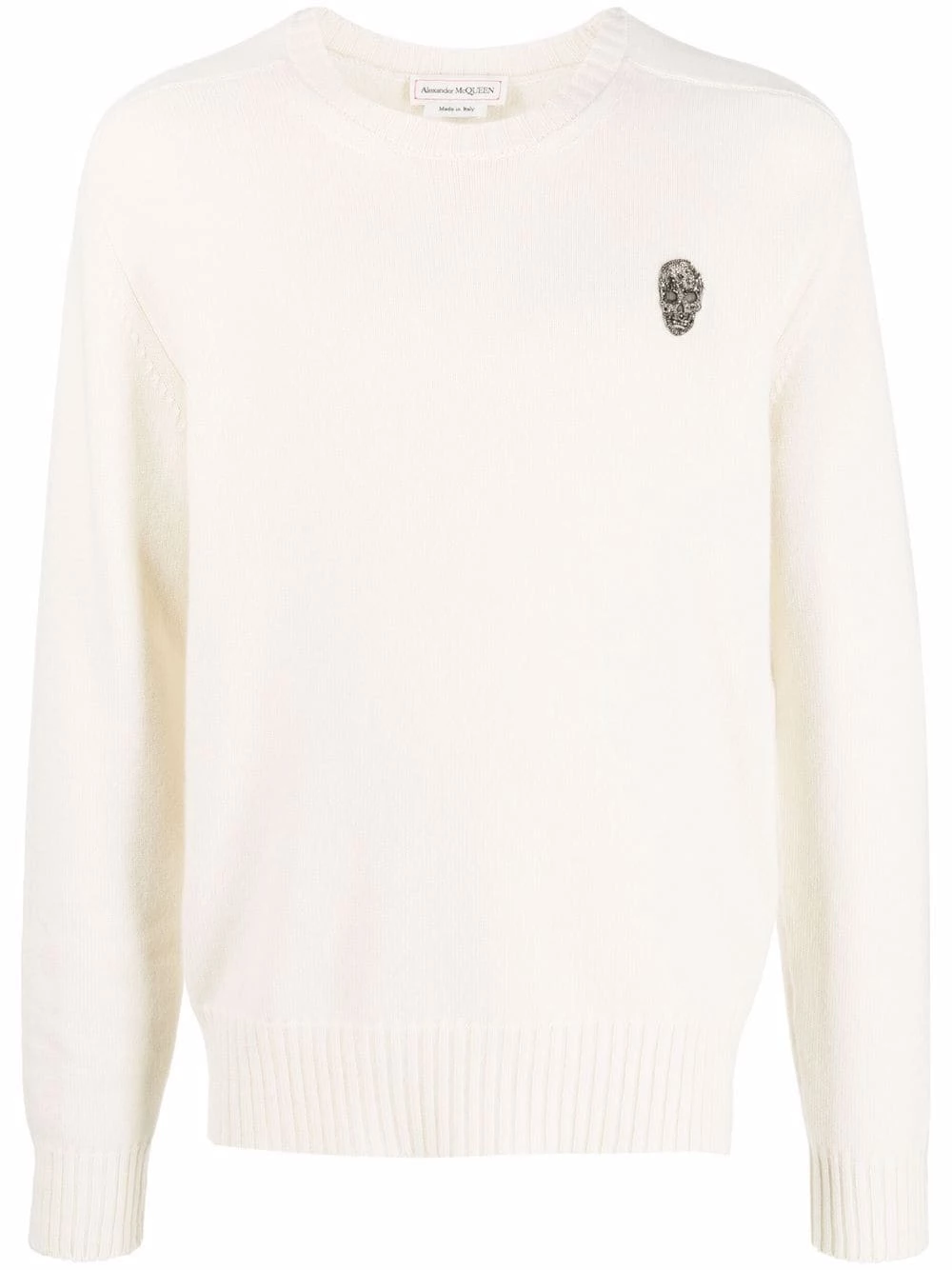 Staying true to the intrinsic DNA of Alexander McQueen, this cashmere-spun jumper is decorated with a skull motif. The skull patch at the chest is embroidered with beading for a touch of glamour to this otherwise understated knitwear staple.