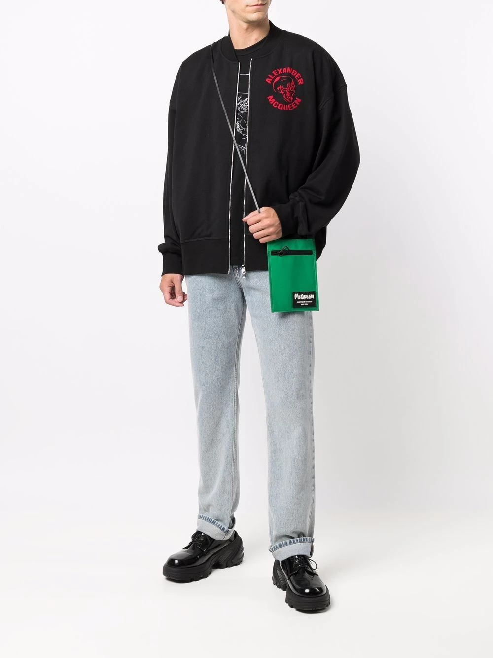 Dating back to the late Lee McQueen’s 1992 graduate collection, the ominous skull symbol continues to be at the heart of the British fashion House’s work. For AW21, it remains front and centre – shown on this bomber jacket.