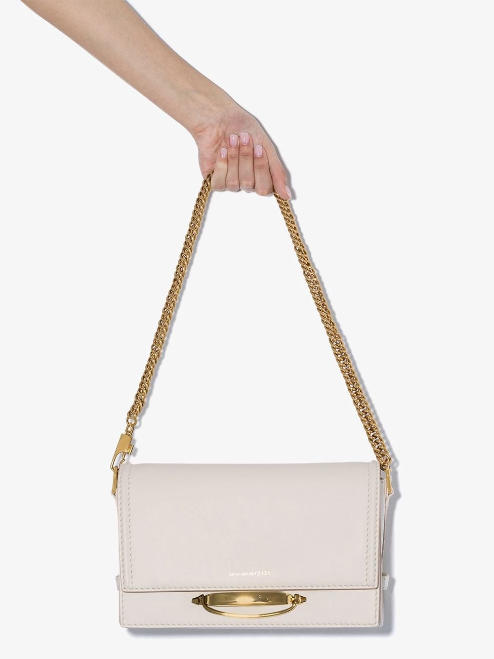 We’re not telling tall tales when we say this bag will change your life. Alexander McQueen’s deep ivory leather The Story shoulder bag has enough space inside to carry everything you could possibly need to take on your busy Monday whilst keeping you effortlessly stylish with its minimalistic design. Get your happily ever after today. Featuring a detachable shoulder strap, stitched panels, a printed logo to the front, a foldover top with magnetic closure, a main internal compartment, an internal zipped pocket and an internal slip pocket.