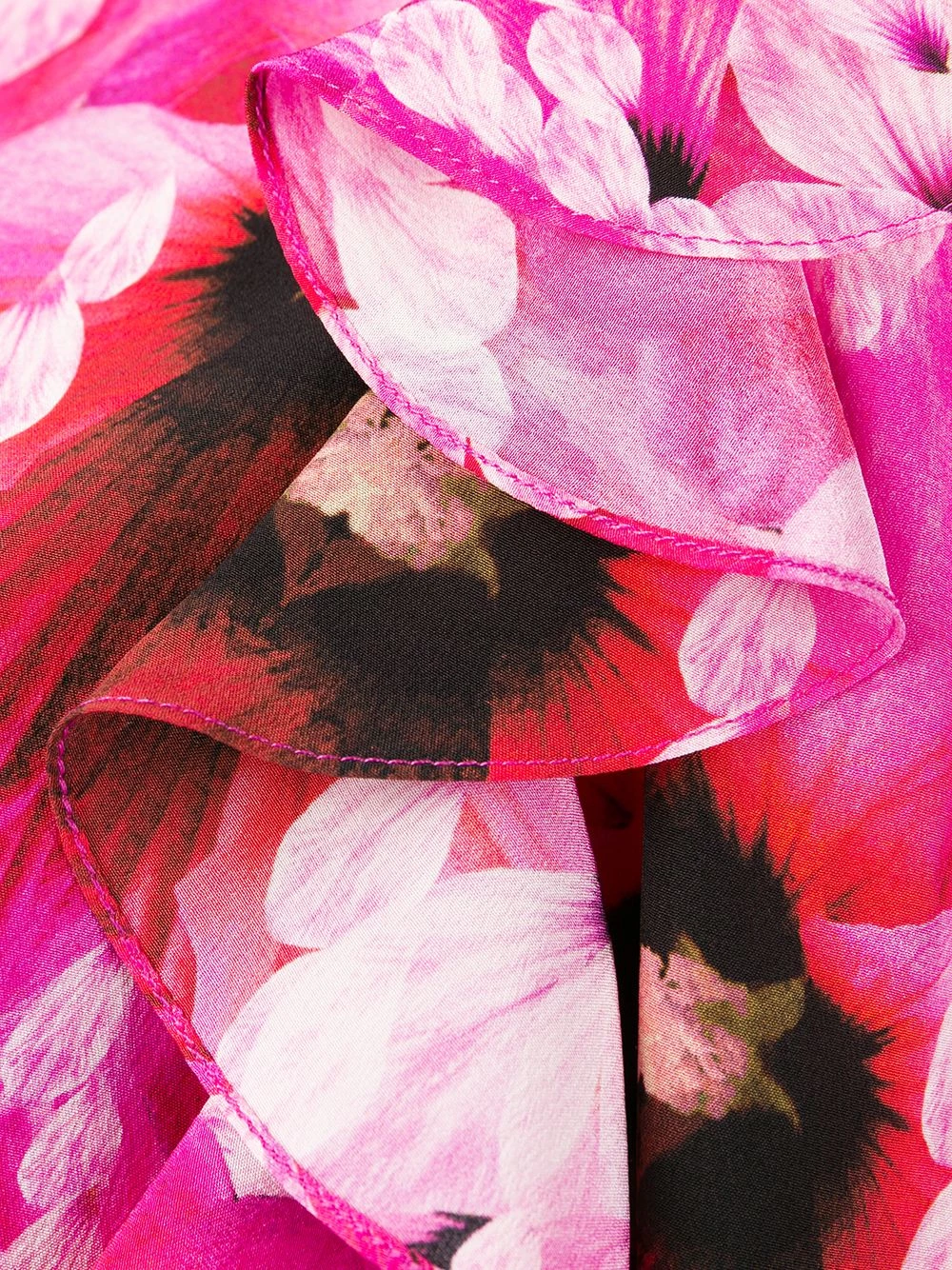 Pretty in pink. Keep it short and sweet in this tonal pink silk hibiscus print flared mini dress from Alexander McQueen. Make it yours. Featuring an all-over print, a short length, a flared skirt, a frill trim, a pussy bow fastening, an a-line style and a partial lining.