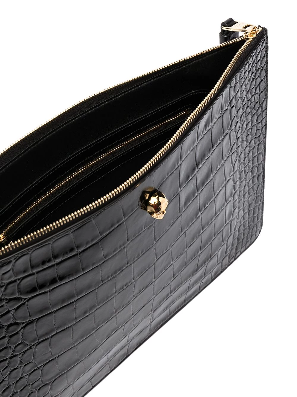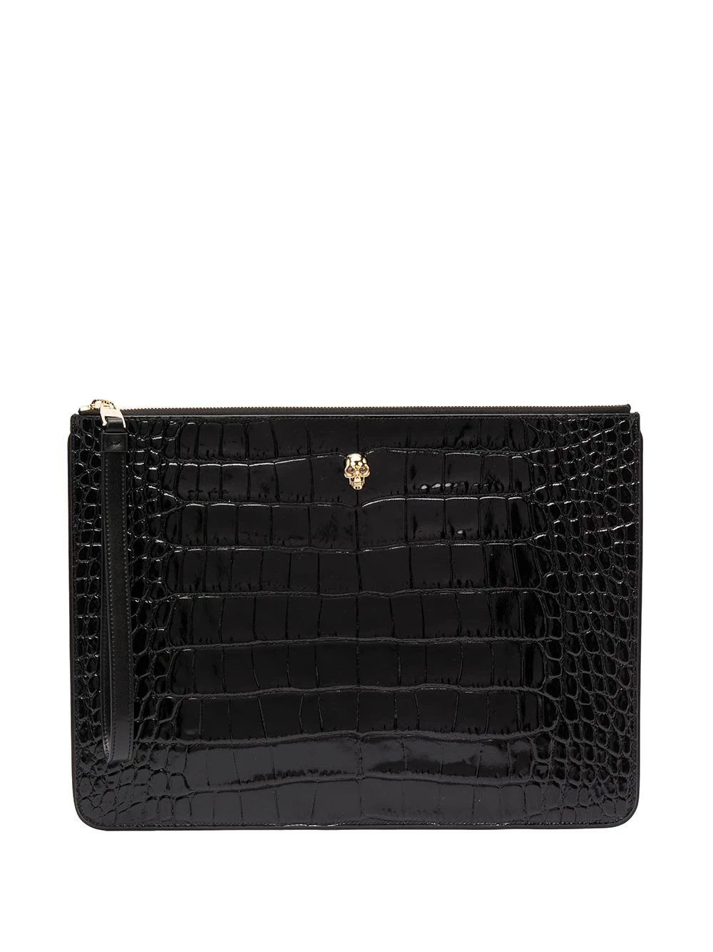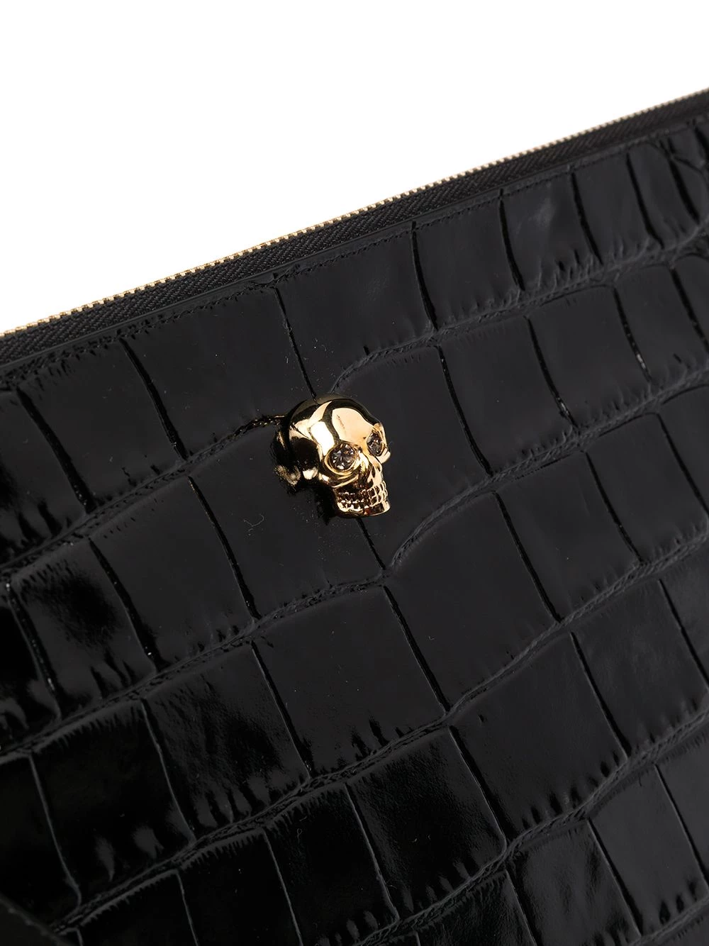 Everyone loves the girl with makeup in her bag on a night out, right? Well, you can be her with this roomy crocodile effect leather clutch by Alexander McQueen. [Lipstick? Which colour?
