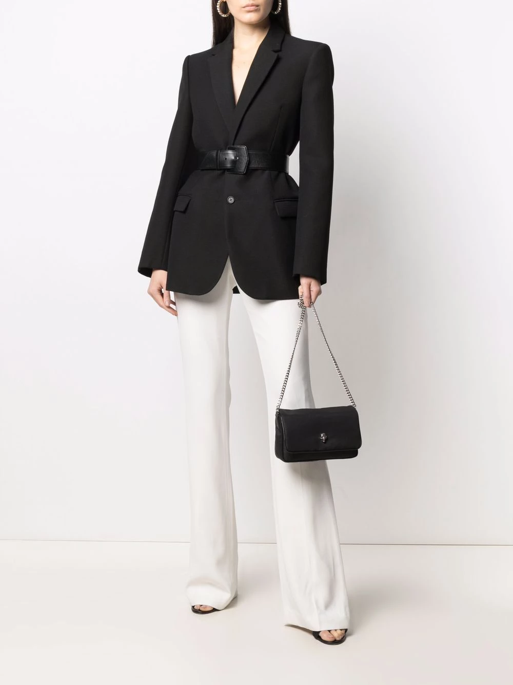 The skull motif is an Alexander McQueen mainstay. In the same silver-tone finish as the strap, it draws the focus on this shoulder bag, adding an iconic detail to the piece.