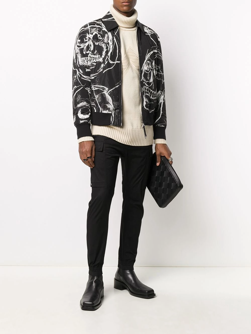 Don’t let the skull intimidate you. This black shirt jacket from Alexander McQueen is really the best choice for your casual style. You can trust.ย