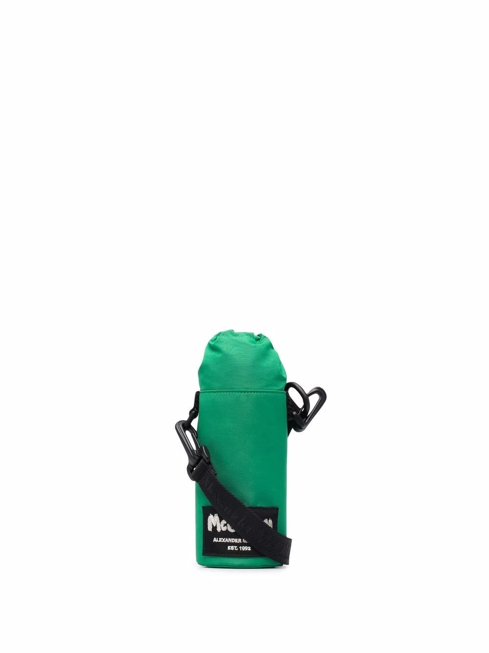 Jade-green/black/white small logo-patch messenger bag from Alexander McQueen featuring logo patch to the front, main compartment, drawstring fastening and adjustable shoulder strap.