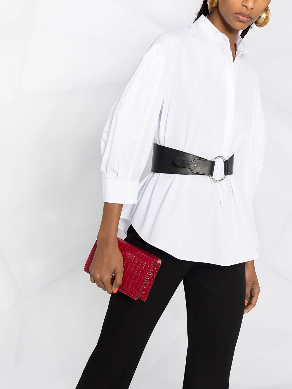 From a smart occasion to a nice dinner date, this balloon-sleeved shirt from Alexander McQueen fits it all. Made from cotton, this white shirt features 3/4 balloon sleeves. A classic piece with a different touch.