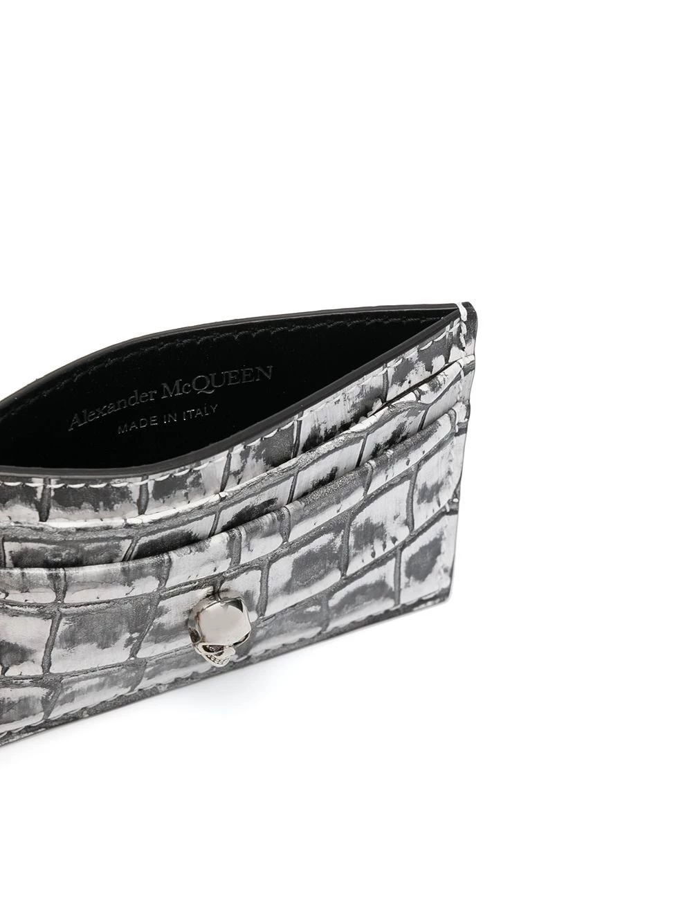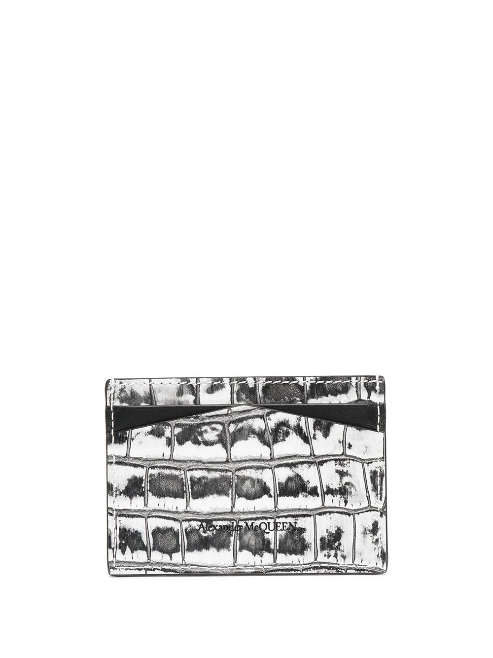 House your cards in this sleek cardholder. Alexander McQueen’s black and white accessory is embossed with a crocodile effect. Only the best for you.