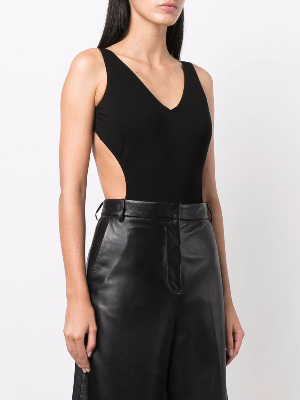 Jet-black cut out-detail sleeveless top from Alexander McQueen featuring fine knit, cut-out detailing, V-neck and sleeveless.