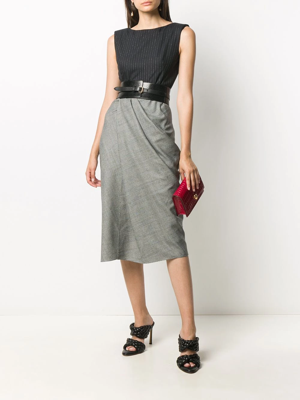 Dress to impress. Boasting a pinstripe and check print, this midi dress from Alexander McQueen will surely make heads turn. Will you give it a go?