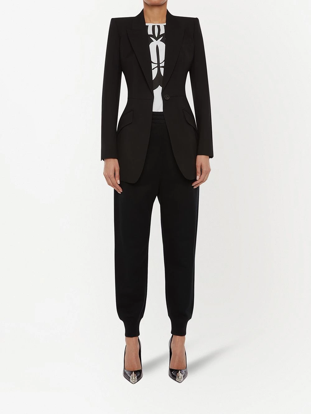 Comfort and style can be easily obtained. Constructed from black cotton, simply throw on these embroidered logo track pants from Alexander McQueen and that’s what you’ll get. All in one go.