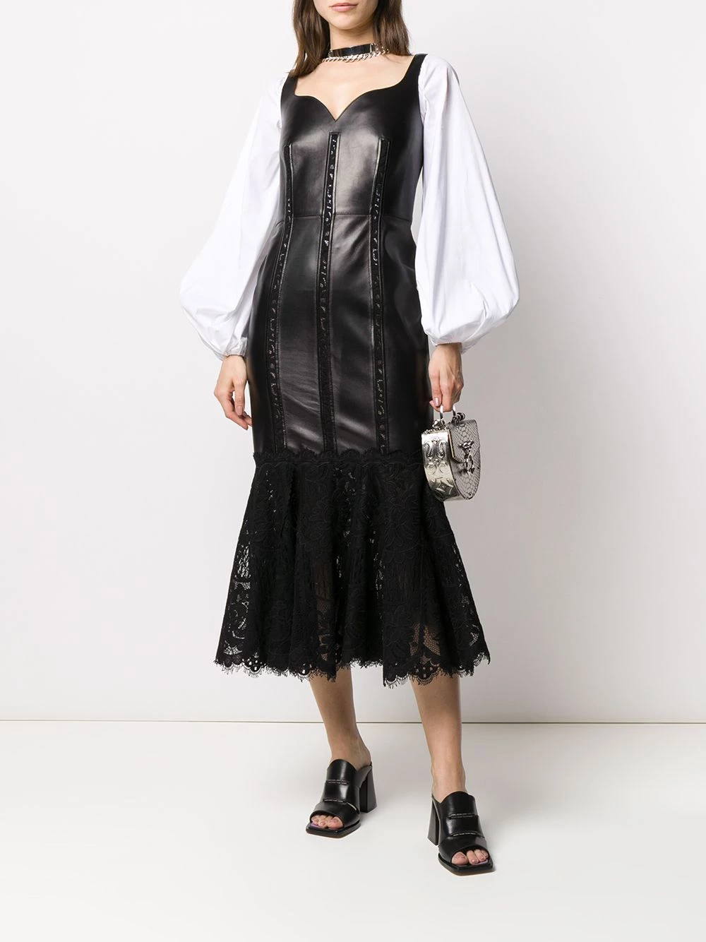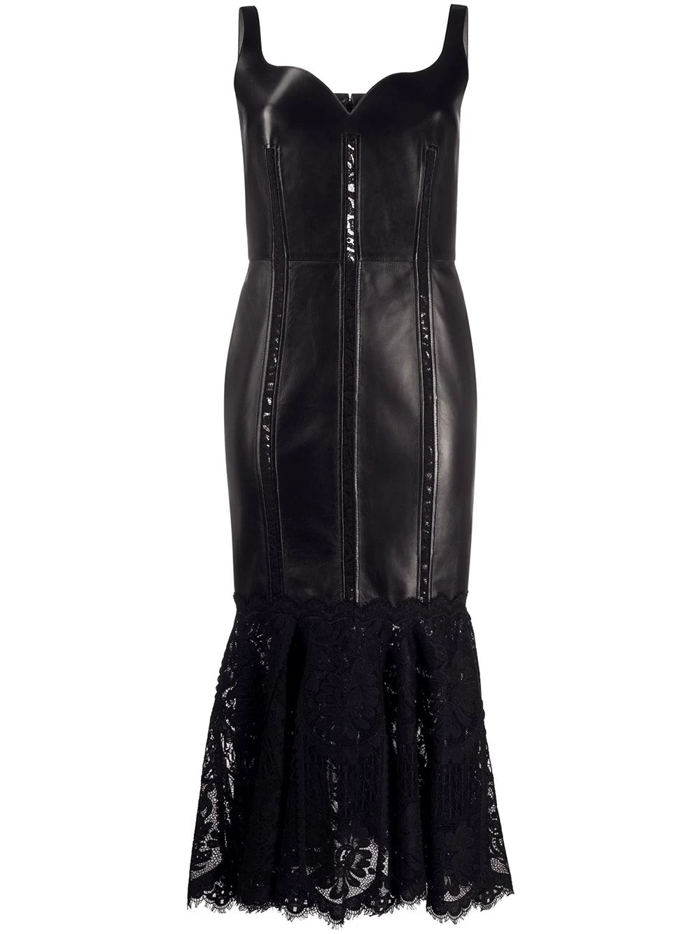 Forget the little black dress. Replace your go-to LBD for this floral lace trim fitted dress from Alexander McQueen. Be prepared from a little extra attention.