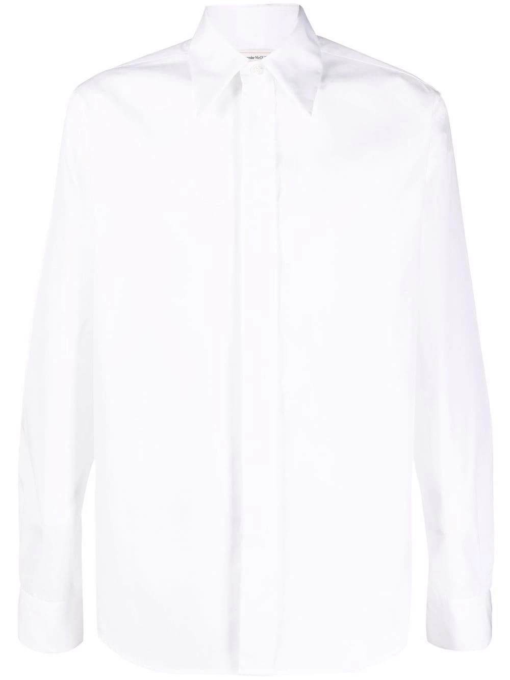 Reiterating Alexander McQueen’s tailoring prominence, this tonal shirt captures the brand’s attention to technical detail, featuring a classic collar and long sleeves.