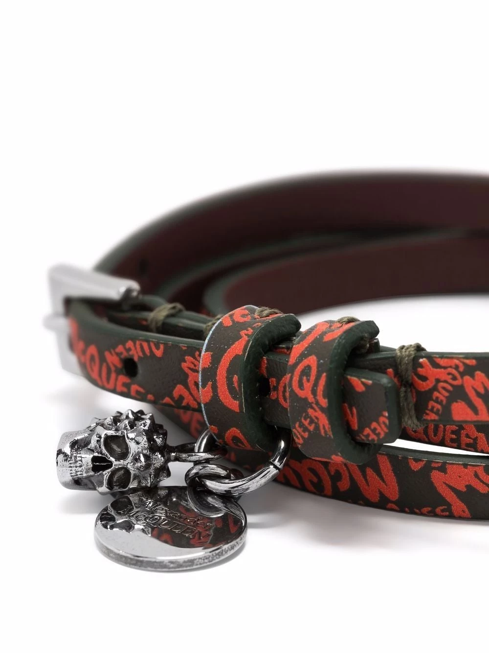 Alexander McQueen knows first impressions are important. That’s why they’ve camouflaged this leather double-wrap bracelet with their signature McQueen Graffiti print. Just so everyone knows you’ve got impeccable taste.