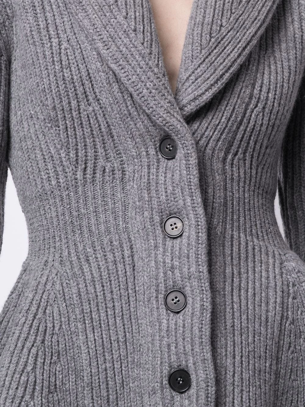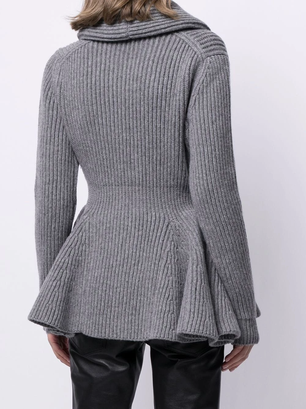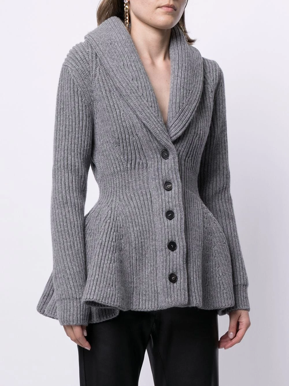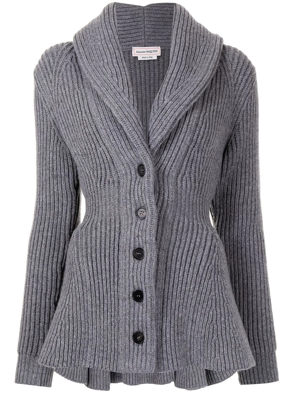 Alexander McQueen masters the art of sculpted knitwear with this rib-knit peplum cardigan. Made from wool and designed with a fit-and-flare silhouette, this unique piece ideal for when smart layering is a must.