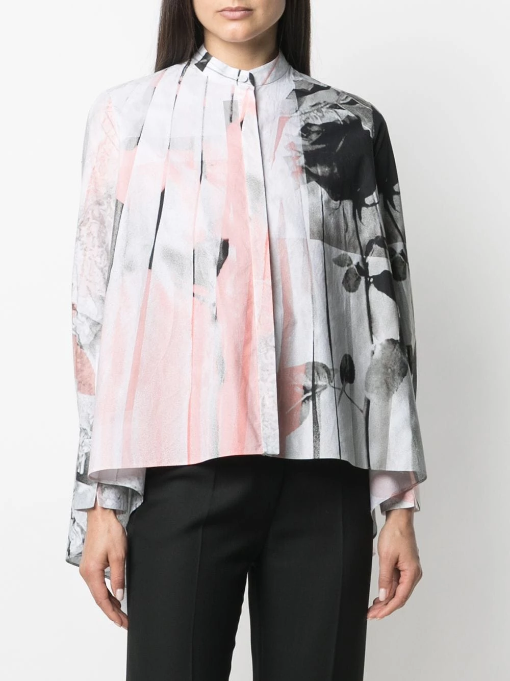 Update your wardrobe with the help of Alexander McQueen. This white, pink and black cotton rose-print shirt is a step up from your average bouquet. No water required.