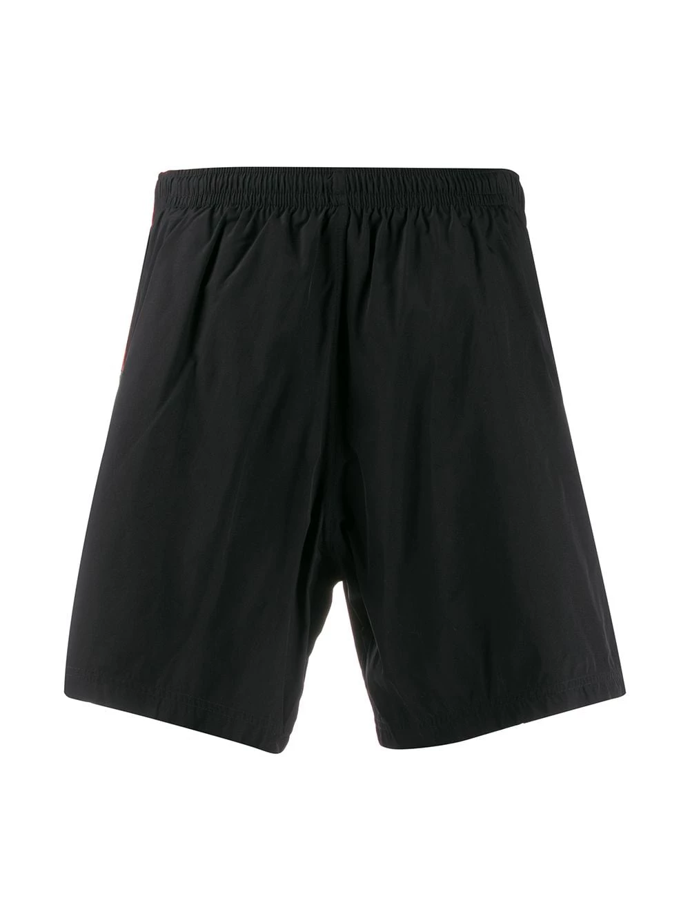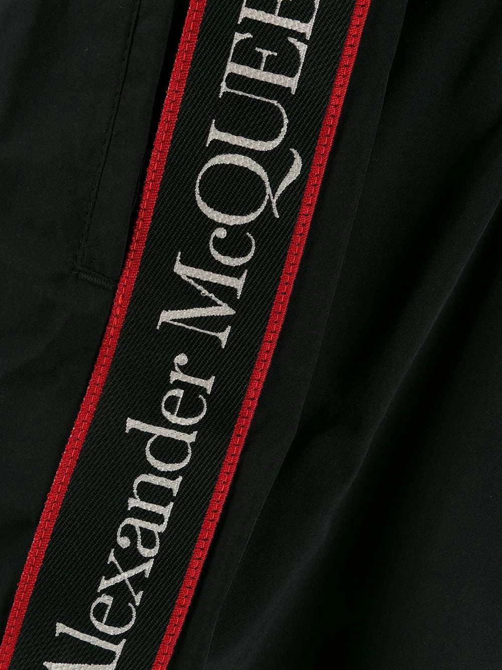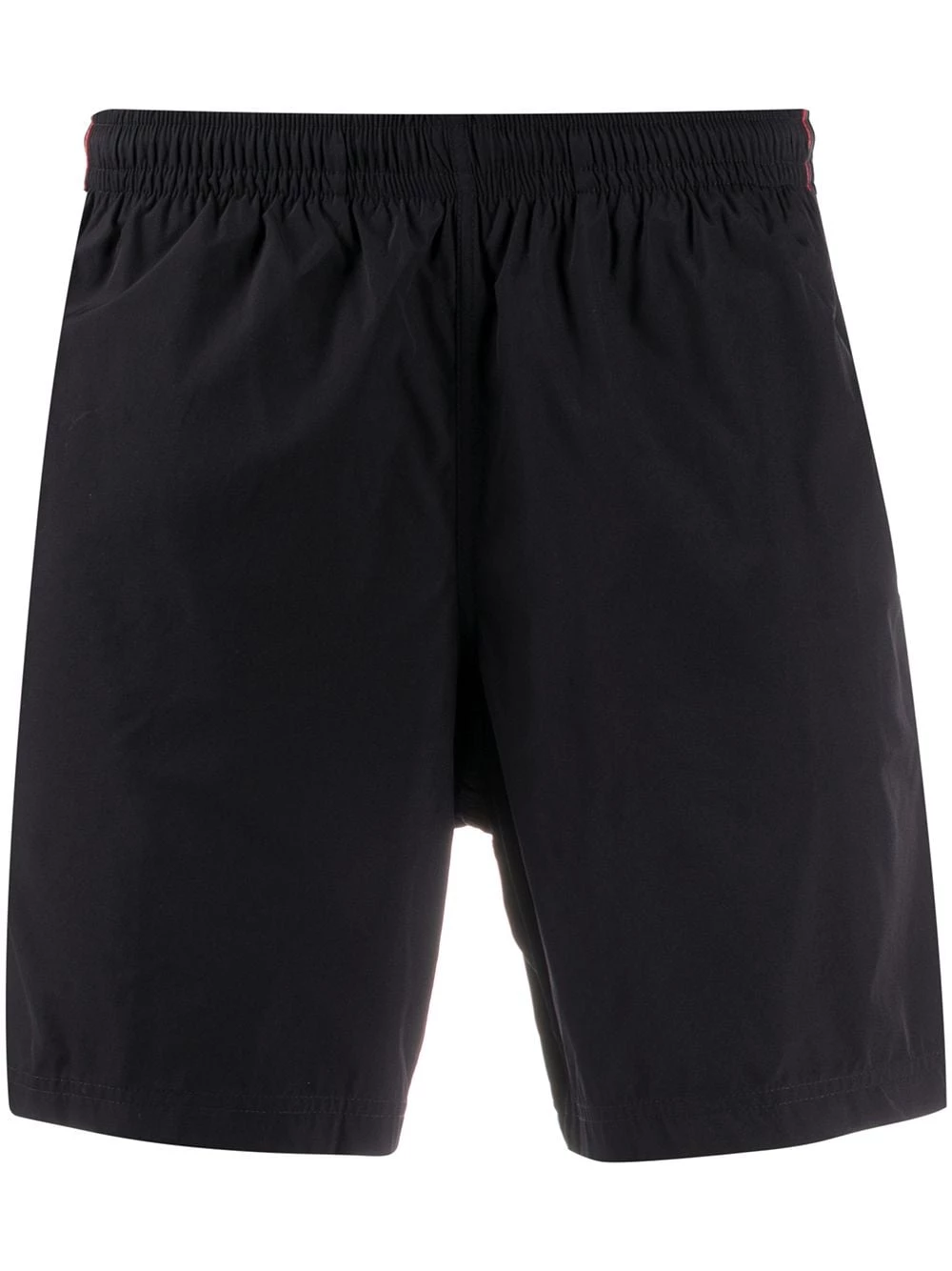 You’ll catch us wearing these black side tape swim shorts from Alexander McQueen on our next vacation to Sri Lanka while drinking mojitos and dancing on the beach. We’ll be the ones with the darkest tan โ to go with the shorts. Featuring an elasticated waistband, a knee length and a contrasting side tape with red stripes and white logo.