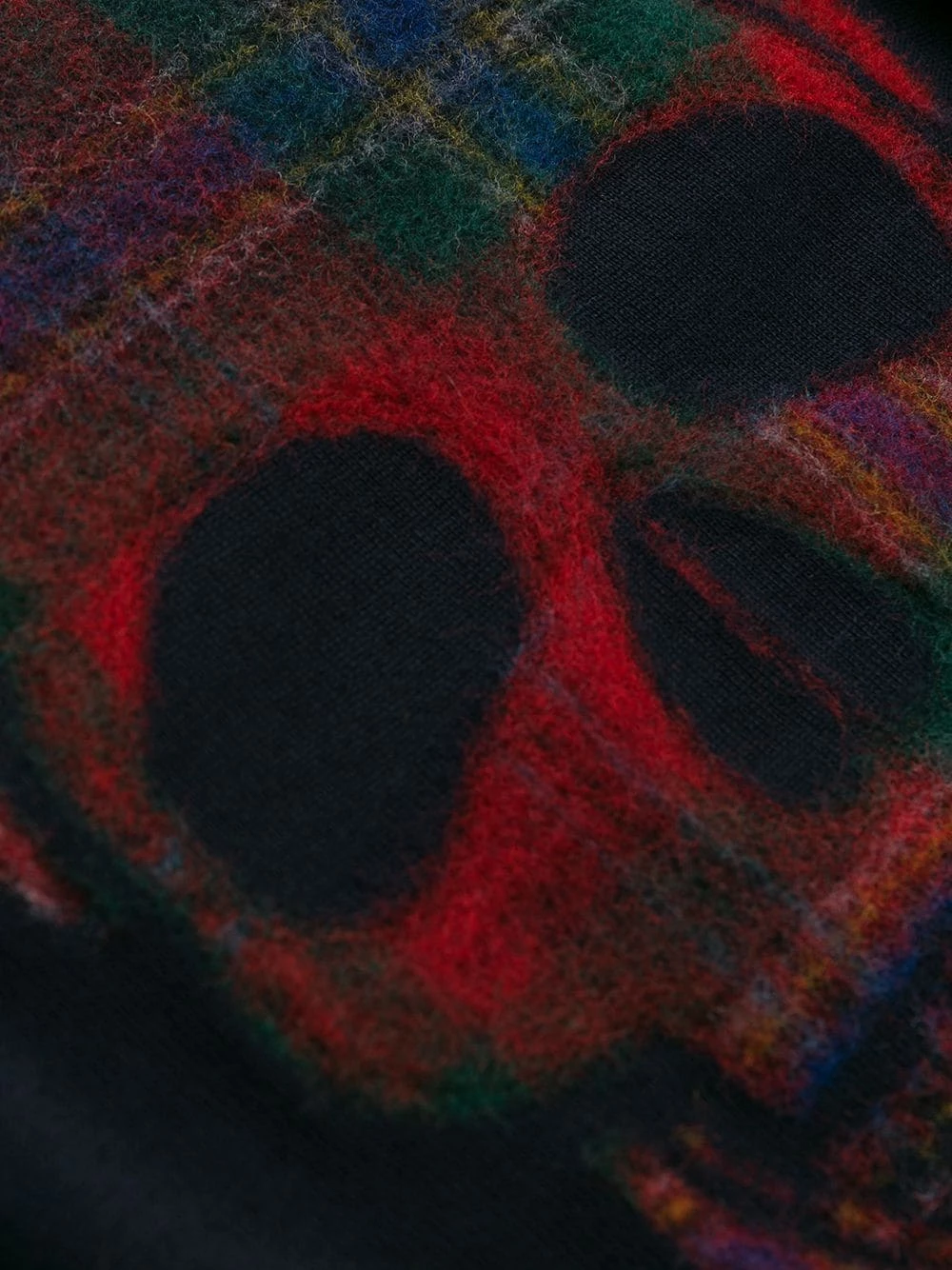 Discover the darkly alluring aesthetic of Alexander McQueen in the latest collection. Theatrical designs feature intricate, opulent detailing and gothic motifs like this wool skull motif sweater. Featuring a ribbed round neck, long sleeves, a ribbed hem and cuffs and a tartan skull motif to the front.