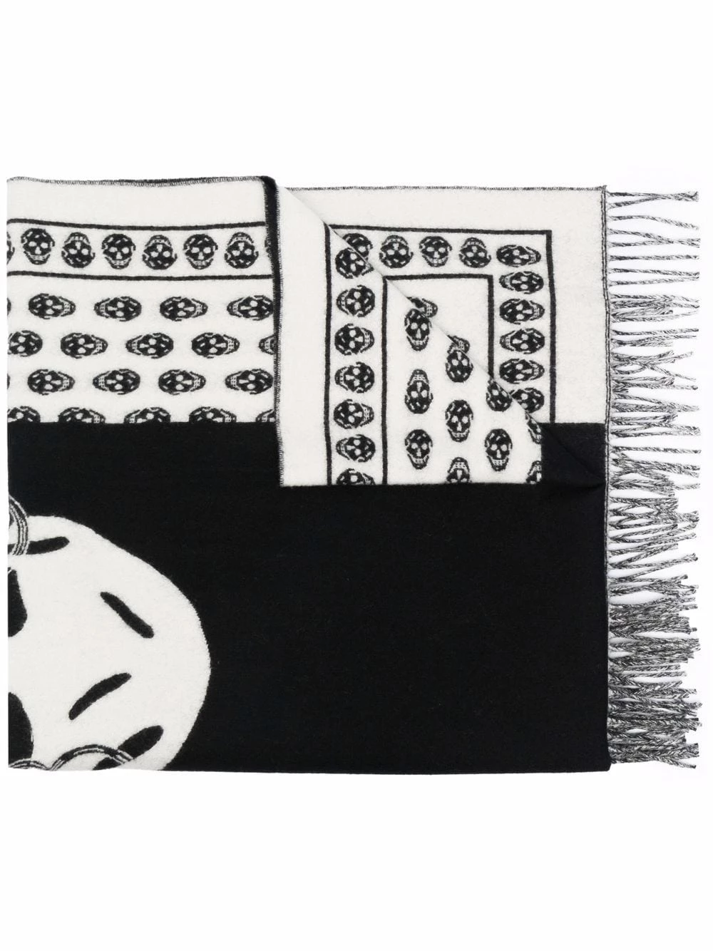Detailed with Alexander McQueen’s signature skull motif, this scarf stays true to the label’s alluring identity. Its intarsia design is finished with a bold front logo for an unmistakable finish.