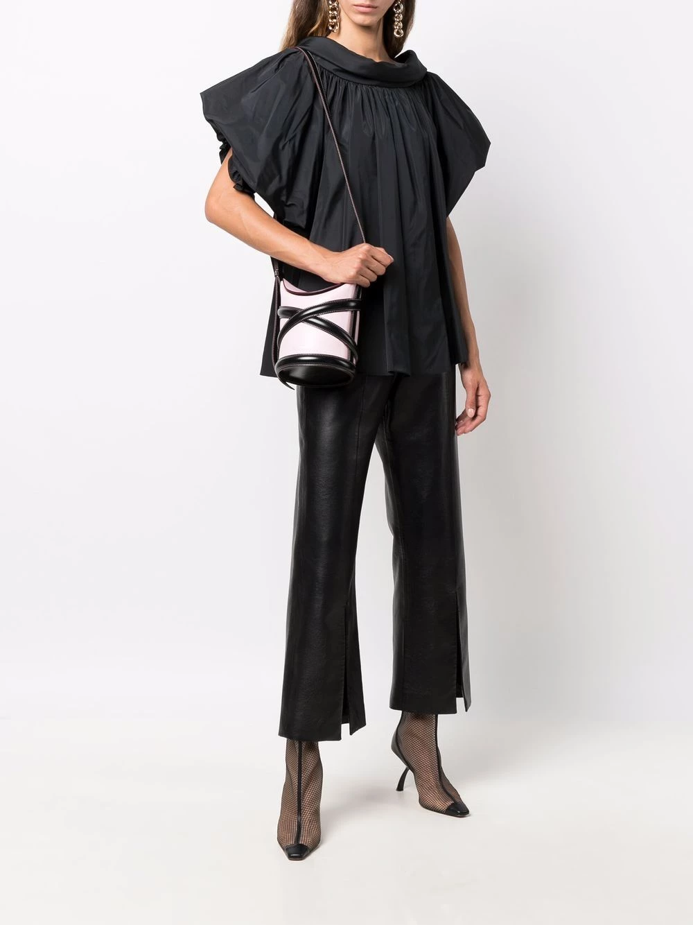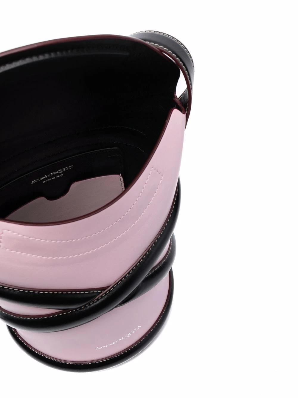 The Curve in a graphic iced pink and black is calf leather inspired by the harness silhouette. This shapely accessory is finished with a high frequency debossed Seal Signature and a silver-tone logo print.