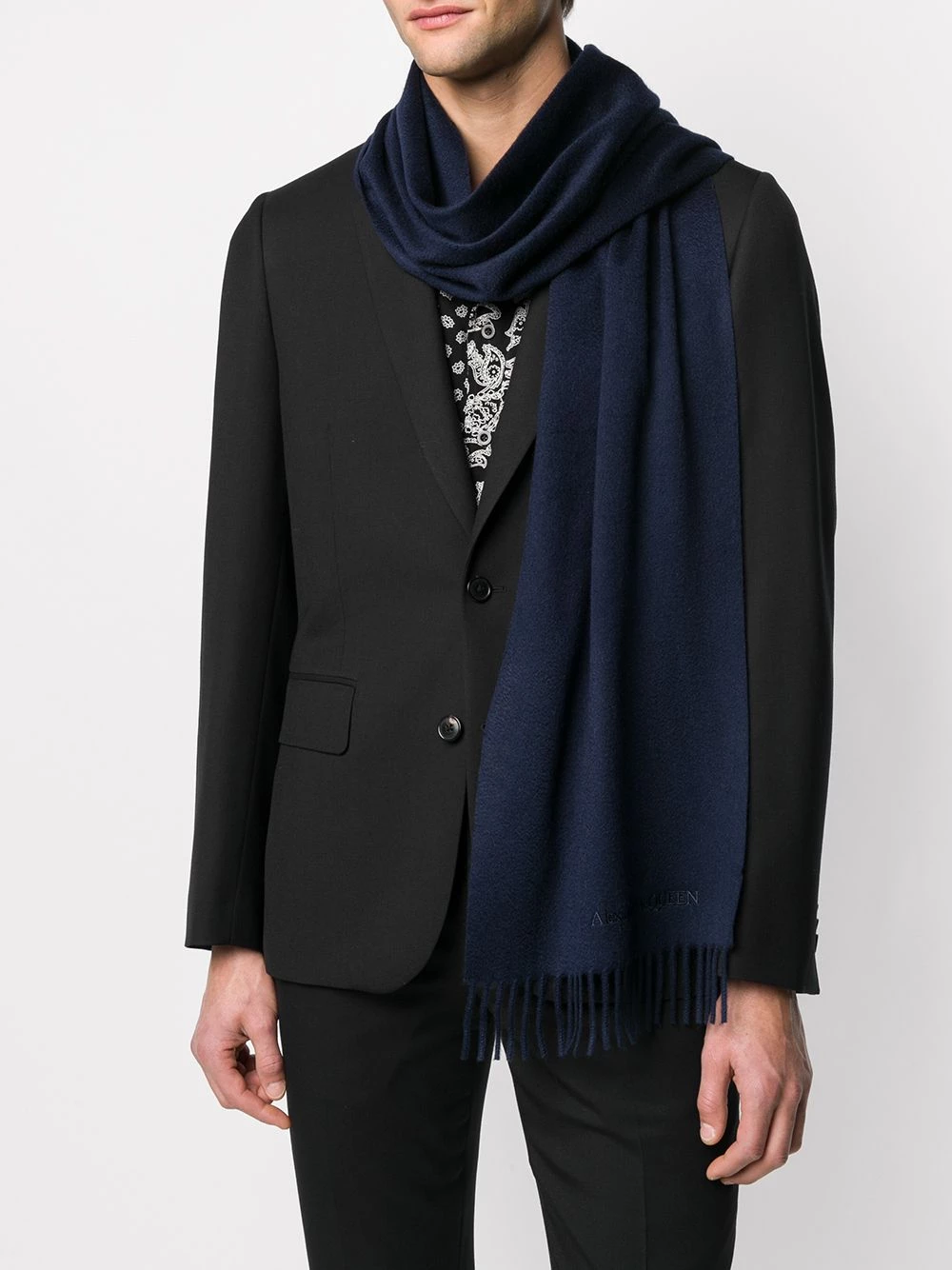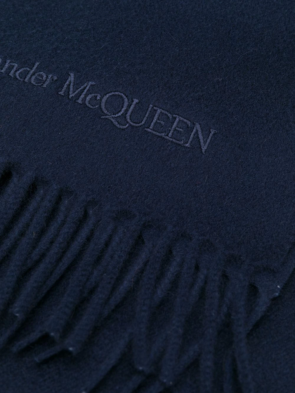 Alexander McQueen has taken it right back to basics and we are in love. Woven from midnight blue cashmere, wrap yourself up in the luxury of this scarf. Embroidered with a tonal logo, the cold winter winds aren’t ready for you. Featuring an embroidered logo to the front and frayed edges.