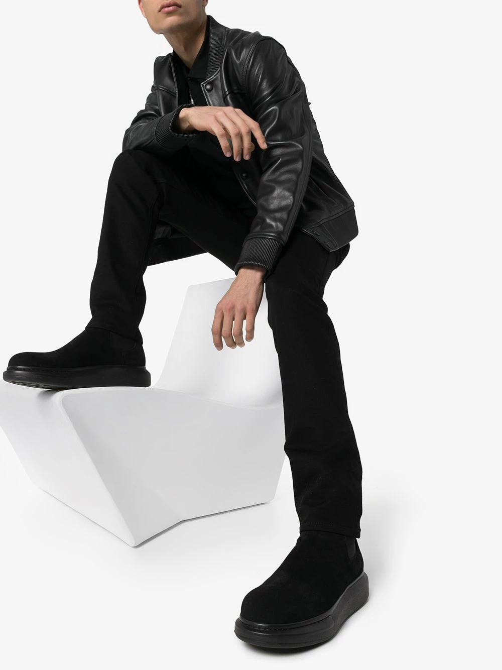 Half Oversized sneakers, half classic Chelsea boots – these elements come together to make all your dreams come true. These black Hybrid Chelsea boots from Alexander McQueen were made to answer your new-season footwear prayers, and to match everything in your wardrobe. You’re welcome. Featuring a round toe, a lace-up front fastening, an ankle length, a pull tab at the rear and an Oversized rubber sole.