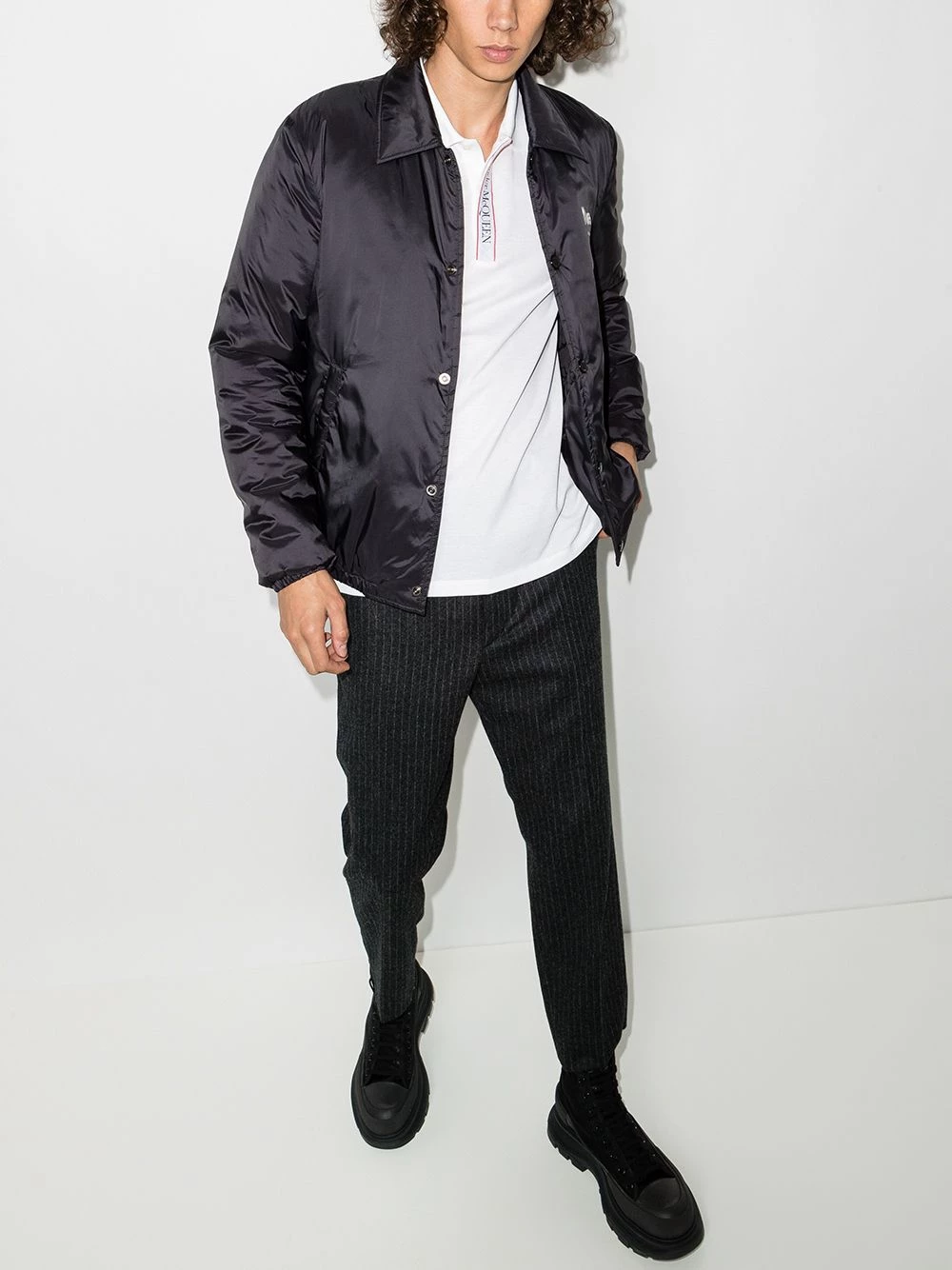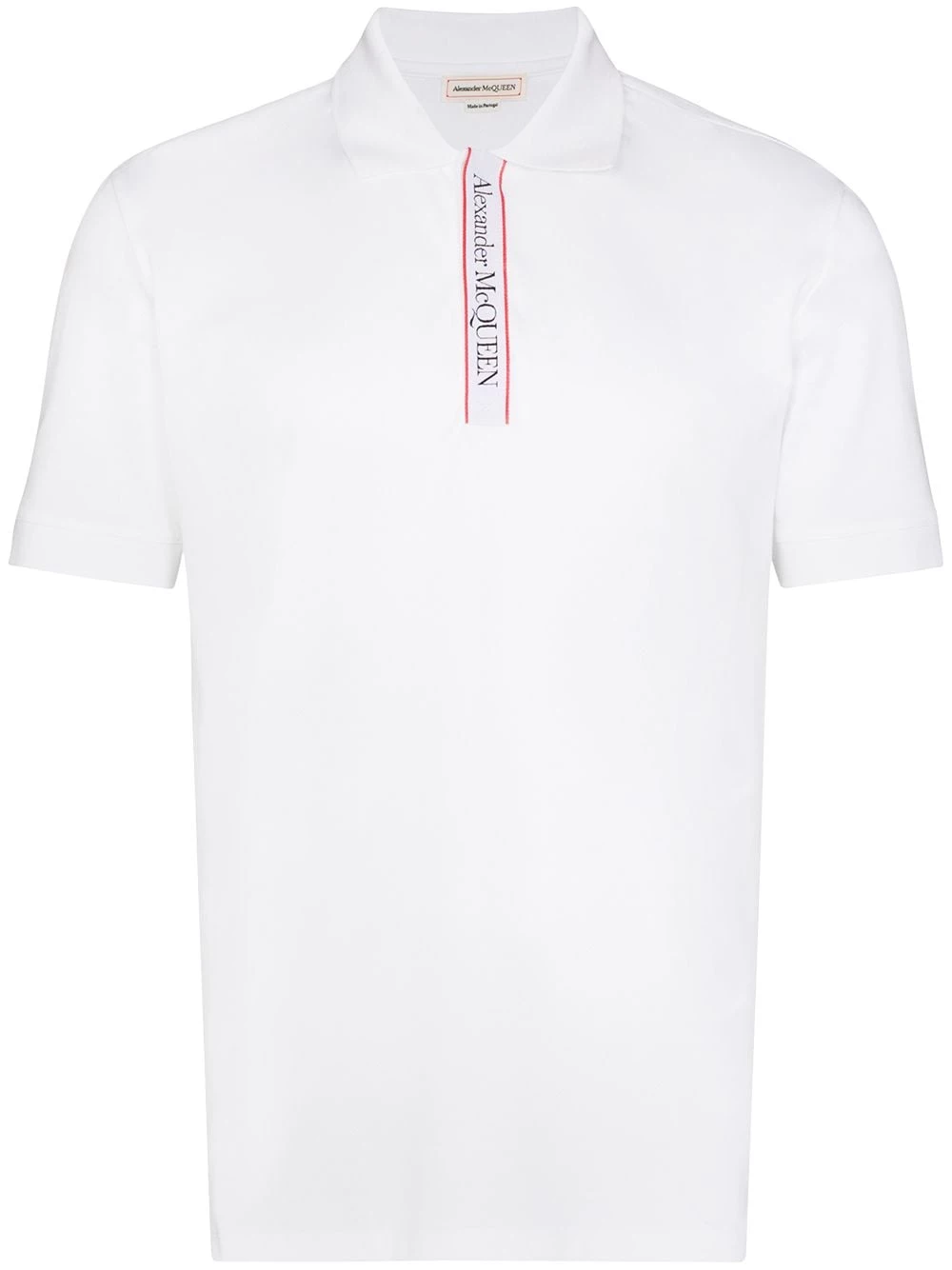 Alexander McQueen showcases its unconventional nature by transforming the classic polo shirt. Made using white pure cotton, the traditional silhouette is adorned with a logo-tape detail at the button placket.