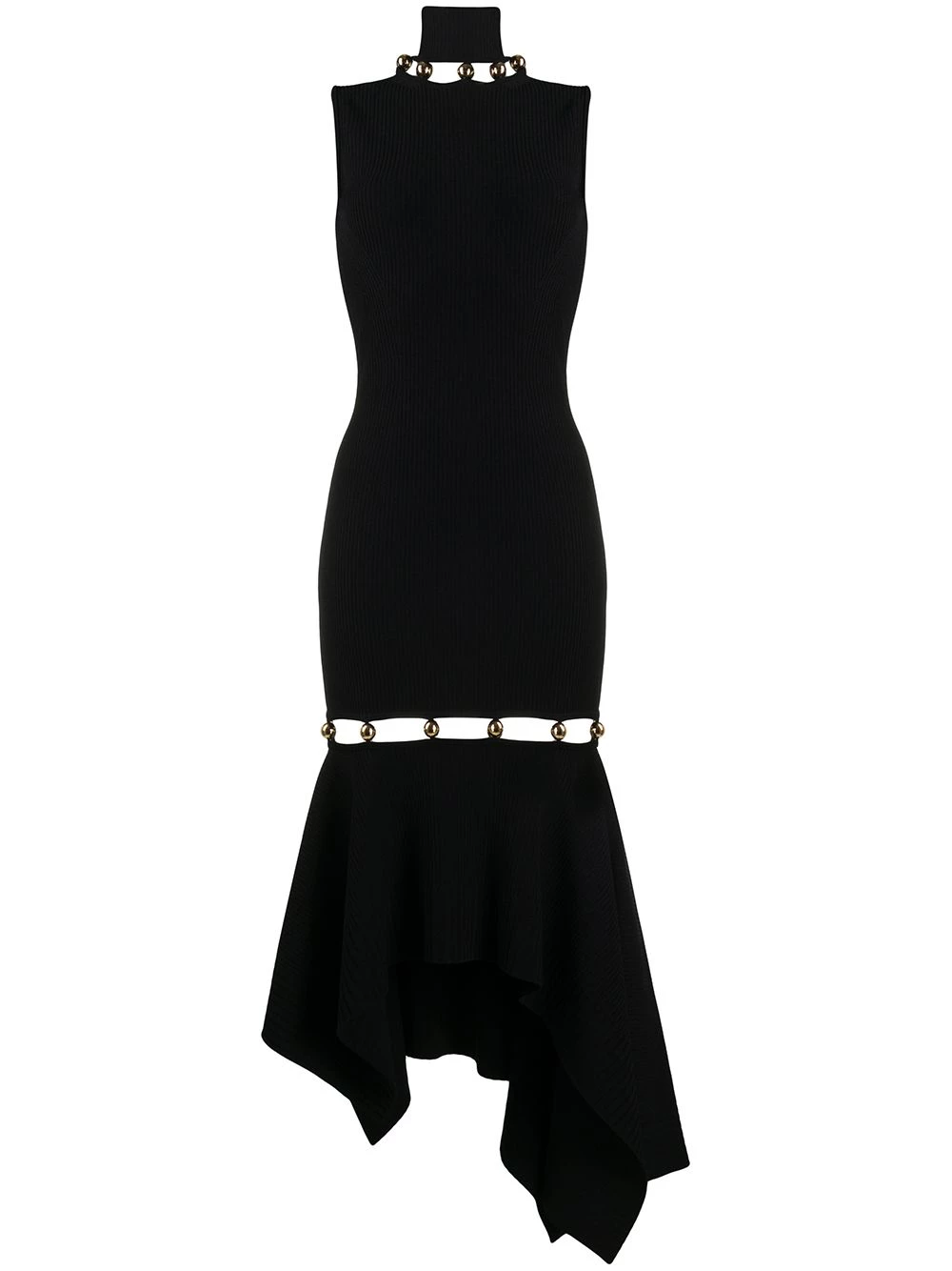 With this Alexander McQueen dress in your wardrobe there’s nothing you can’t handle. Fabricated with an all-over ribbed knit, it features gold-tone spherical charms. Go forth and rock it.